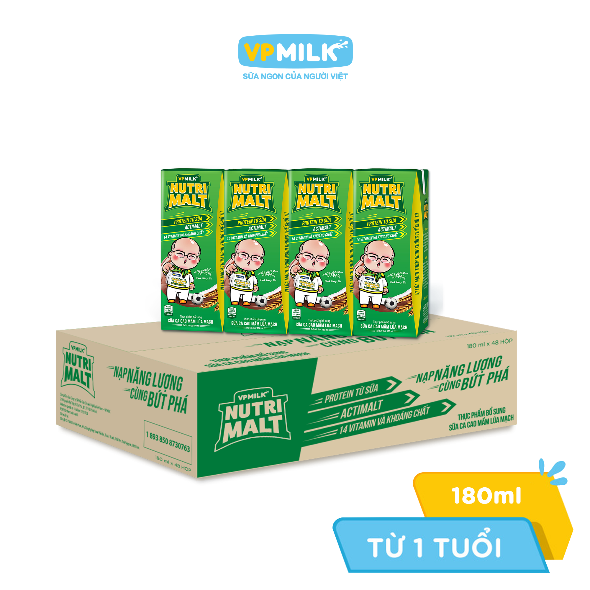 ✨Sữa Ca Cao Mầm Lúa Mạch Đen – VPMilk Nutrimalt 180ml (Thùng 48 Hộp)