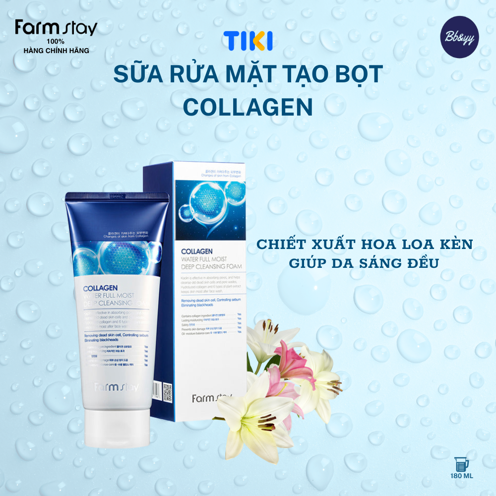Sữa Rửa Mặt FARMSTAY Collagen Dưỡng Ẩm Sâu 180ml THÔNG TIN SẢN PHẨM: • Đơn vị tính và Quy cách đóng gói: Một Tuýp – 180ml. • Nước xuất xứ: sản xuất tại Hàn