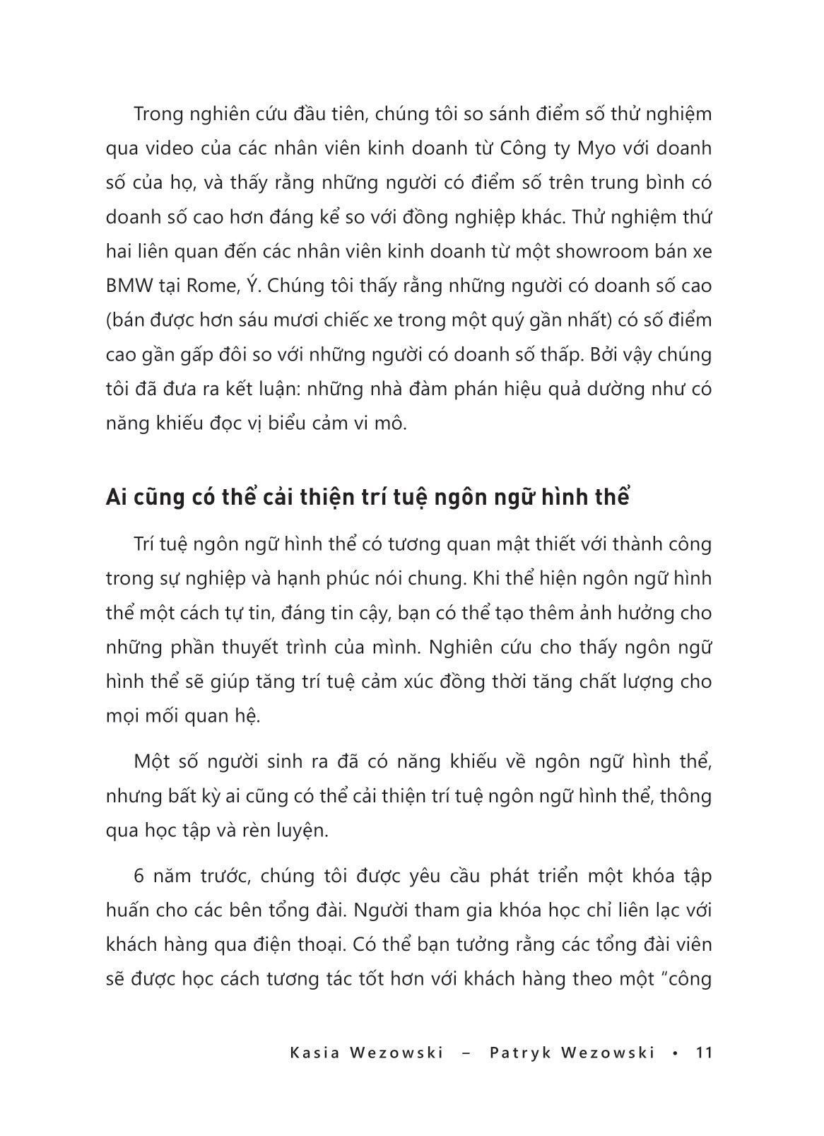 Kasia Wezowski và Patryk Wezowski là người sáng lập Trung tâm Ngôn ngữ hình thể – công ty đào tạo ngôn ngữ hình thể số 1 thế giới dành cho doanh nhân, với đại diện được cấp phép tại hơn hai mươi quốc gia. Họ đã được giới thiệu trên ABC, BBC, CBS, Fox News; xuất bản các bài báo trên Harvard Business Review và Forbes; đã phát biểu tại TEDx và Đại học Harvard, đồng thời các video giáo dục về biểu cảm vi mô và ngôn ngữ hình thể của họ trên Youtube có hơn 3 triệu lượt xem.