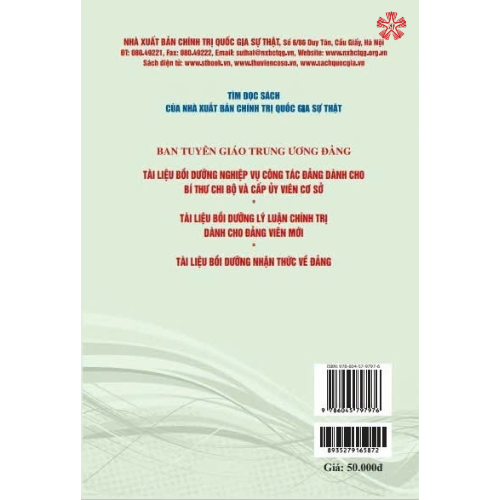 Thực hiện Nghị quyết số 37-NQ/TW ngày 09/10/2014 của Bộ Chính trị khóa XI về công tác lý luận và định hướng nghiên cứu đến năm 2030 và Hướng dẫn số 64-HD/BTGTW ngày 10/5/2018 của Ban Tuyên giáo Trung ương về thực hiện Chỉ thị số 23-CT/TW của Ban Bí thư khóa XII về tiếp tục đổi mới, nâng cao chất lượng, hiệu quả học tập, nghiên cứu, vận dụng và phát triển chủ nghĩa Mác - Lênin, tư tưởng Hồ Chí Minh trong tình hình mới; nhằm giúp các cấp ủy đảng, các địa phương triển khai chương trình bồi dưỡng, cập nhật kiến thức cho cán bộ, đảng viên ở cơ sở, Nhà xuất bản Chính trị quốc gia Sự thật phối hợp với Ban Tuyên giáo Trung ương Đảng tái bản cuốn sách "Tài liệu tham khảo bồi dưỡng, cập nhật kiến thức cho cán bộ, đảng viên ở cơ sở".