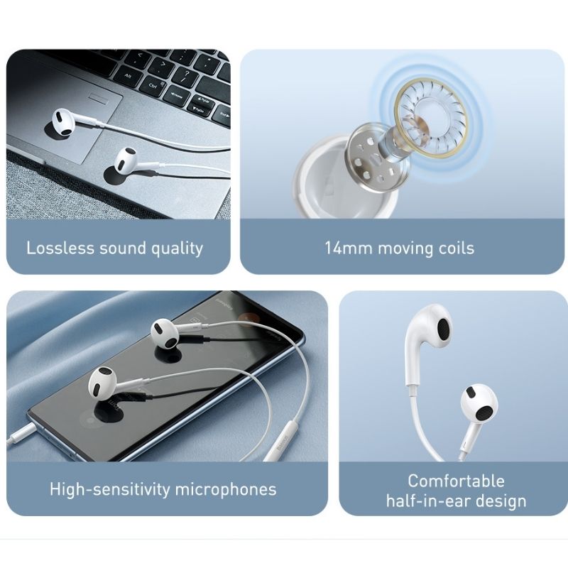 Sản phẩm tai nghe có dây Baseus Encok H06 - Hỗ trợ hiệu ứng âm thanh vòm 8D với 8 lõi âm thanh nổi  - Bộ dây 14.2mm cho âm thanh tự nhiền với những