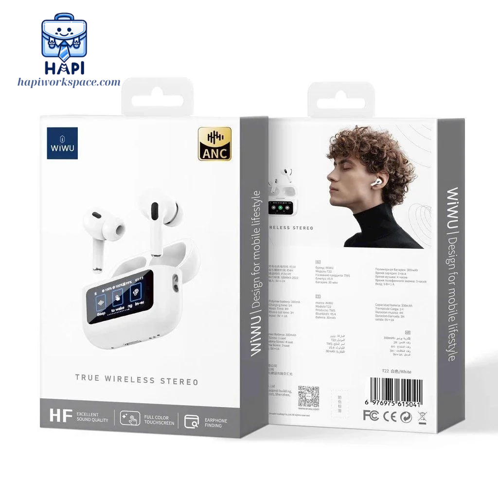 Màn hình hiển thị cảm ứng trên thân hộp giúp thao tác tiện lợi, quan sát được các tính năng, dung lượng và tăng tính thẩm mỹ, độc đáo cho tai nghe