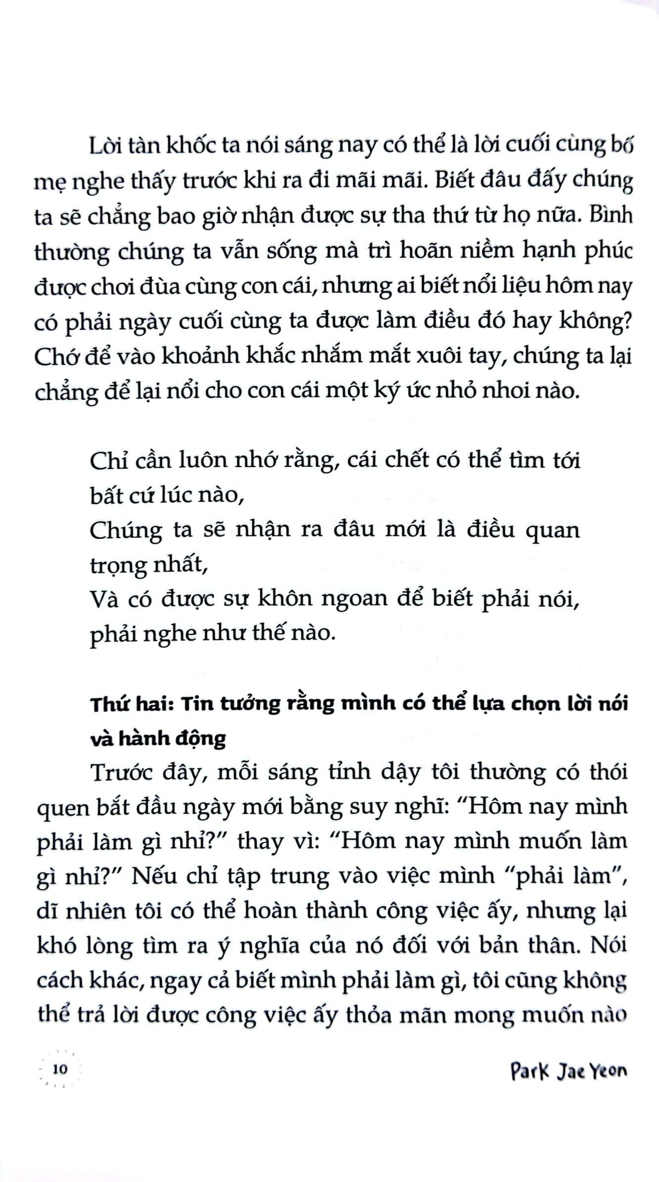 Học cách đối thoại đúng đắn không phải để một ngày kia bản tính chúng ta sẽ bất ngờ thay đổi hay đối phương đột nhiên răm rắp nghe lời ta. Mà quan trọng hơn, ta sẽ rèn luyện được con mắt nhìn nhận người khác, và trên tất cả, đạt tới năng lực thấu hiểu. Chúng ta sẽ dám đứng lên khắc phục tình huống khó khăn, tiếp tục đối thoại bằng những kỹ năng hoàn toàn khác biệt.