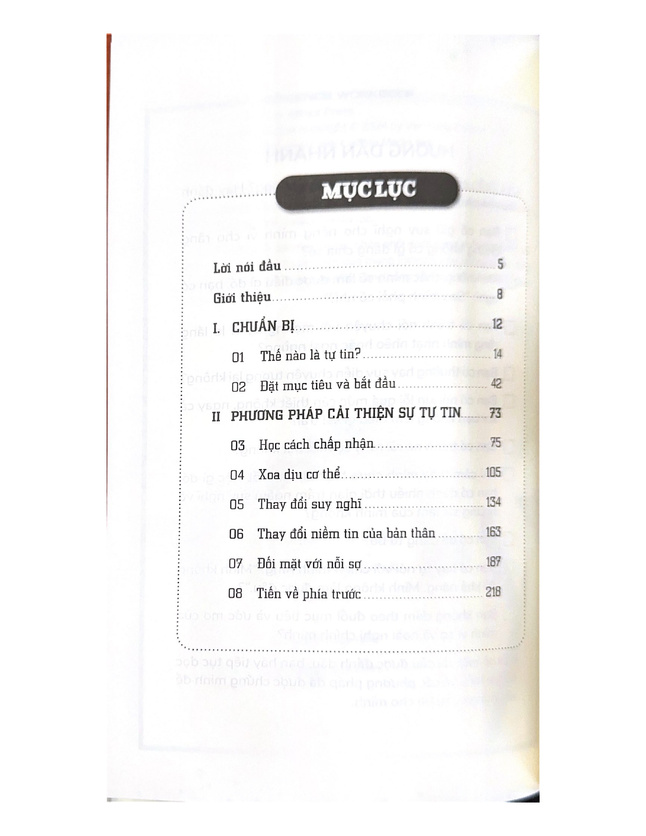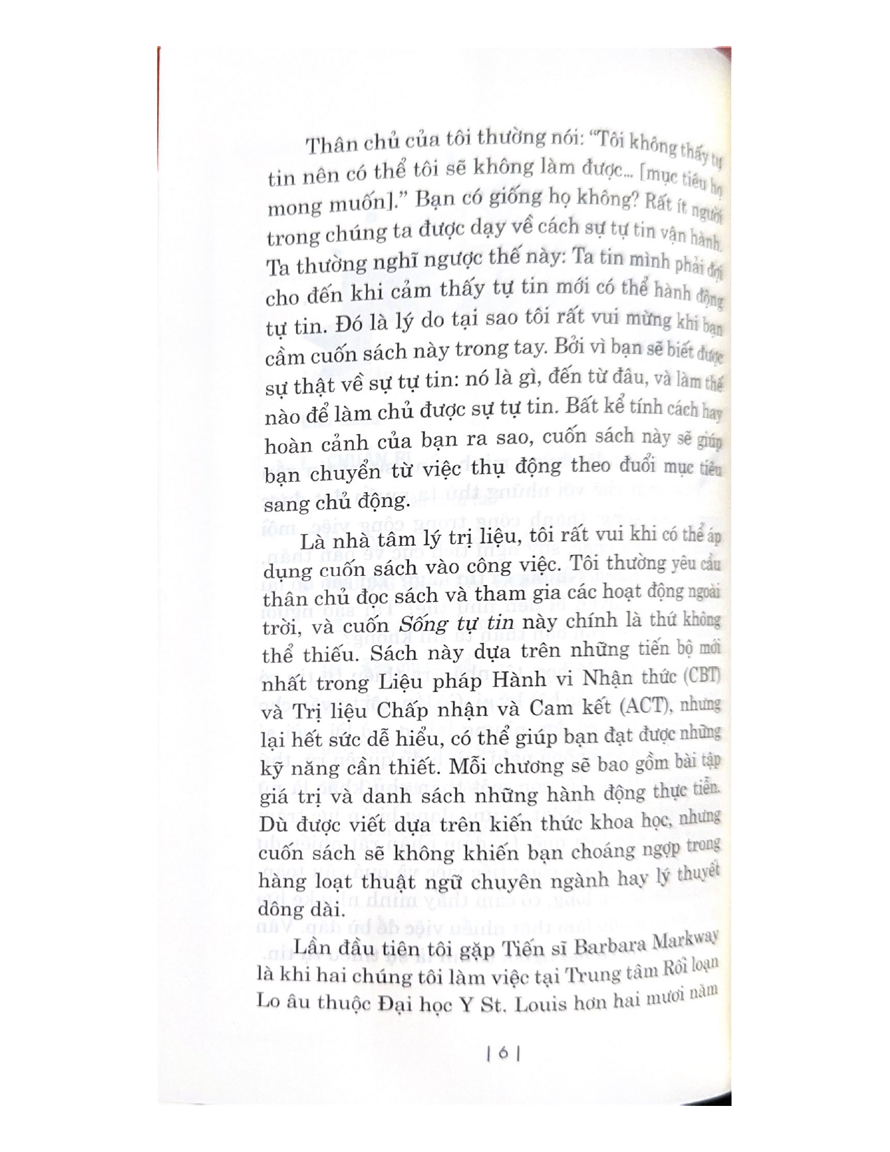 - Giới thiệu Sống Tự Tin Cuốn cẩm nang tự tin này sẽ mang đến cho bạn những phương pháp thực tế, dễ tiếp cận, giúp bạn trở thành phiên bản tốt nhất của chính mình, đồng thời xóa tan sự nghi ngờ bản thân với: Chương trình 5 bước bắt đầu với việc vạch ra mục tiêu và sử dụng các phương pháp hiệu quả để nuôi dưỡng sự chấp thuận, chánh niệm, tự trắc ẩn,… Các bài tập tương tác bao gồm suy ngẫm, danh sách cần thực hiện và câu hỏi gợi mở giúp bạn tiếp thu bài học và khái niệm. Hướng dẫn bạn hiểu rõ định nghĩa về sự tự tin và cách xác định mức độ tự tin ban đầu của bạn. Sách là lựa chọn hàng đầu cho những ai muốn cải thiện sự tự tin trong mọi khía cạnh cuộc sống. Bạn sẽ học được cách vượt qua những cạm bẫy liên quan đến sự tự tin trong các mối quan hệ, công việc và sức khỏe.