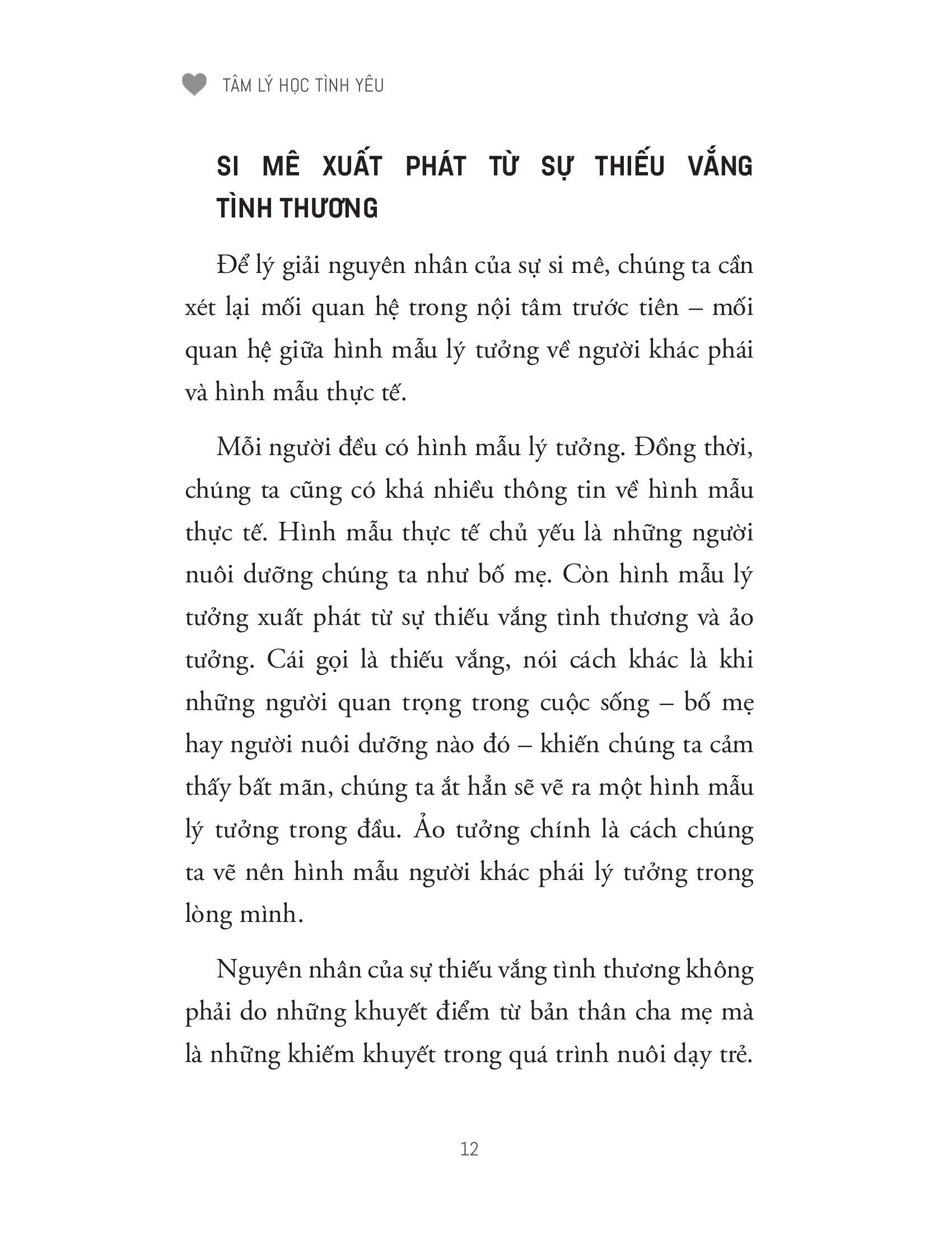 Tâm Lý Học Tình Yêu Thông qua lăng kính triết học và khả năng phân tích những quan điểm của các triết gia đa hệ phái, TÂM LÝ HỌC TÌNH YÊU sẽ diễn giải, phân tích những hiện tượng tâm lý phức tạp của con người trong tình yêu, những cãi vã, quan hệ ngoài luồng, cảm giác chán nản khi yêu xa, yêu lâu cùng những trạng thái tâm lý phức tạp, những biến chuyển đầy tinh tế, từ đó giúp chúng ta hiểu sâu sắc hơn về tâm lý của một người trong tình yêu của đối phương.