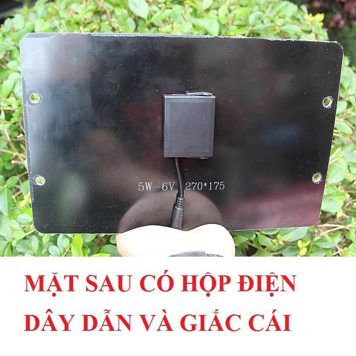 Tấm Panel công suất 5w giúp sạc đầy pin nhanh chóng. Kích thước tấm pin của chúng tôi luôn lớn hơn các sản phẩm khác trên thị trường có cùng công suất và giá. Đặc biệt tấm pin Mono sẽ cho hiệu suất cao