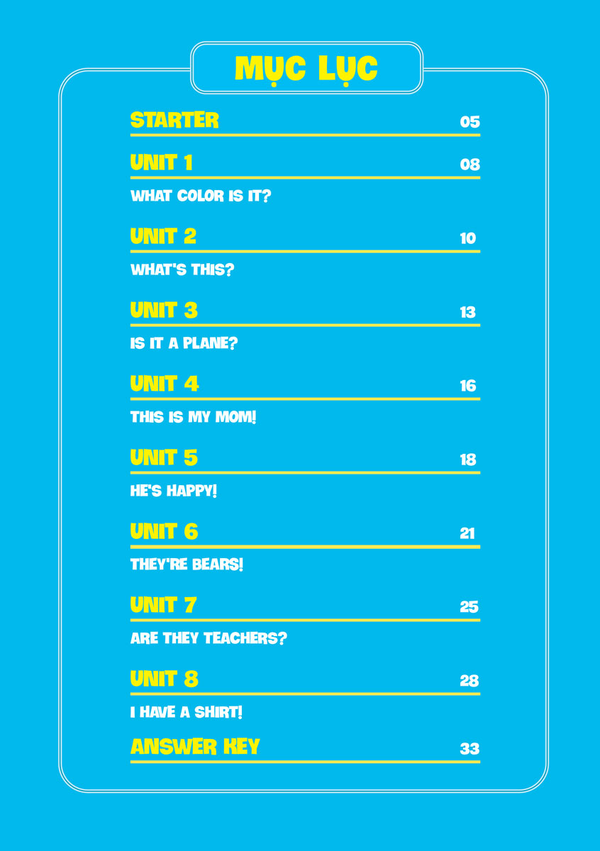 Bài mở đầu (Starter): Đầu mỗi cuốn là bài Starter, bài học sẽ giới thiệu những kiến thức cơ bản nhất, hoặc ôn lại các kiến thức cũ mà các em đã học ở các cấp độ trước.