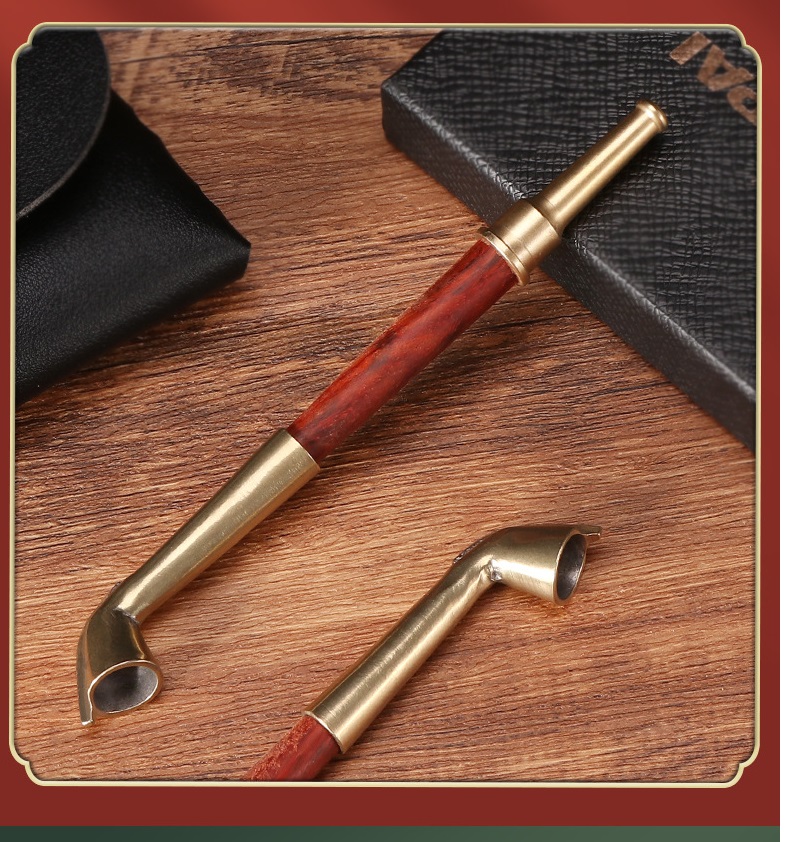 ✨tẩu thuốc gỗ hương gắn sợi bọc hợp kim đồng