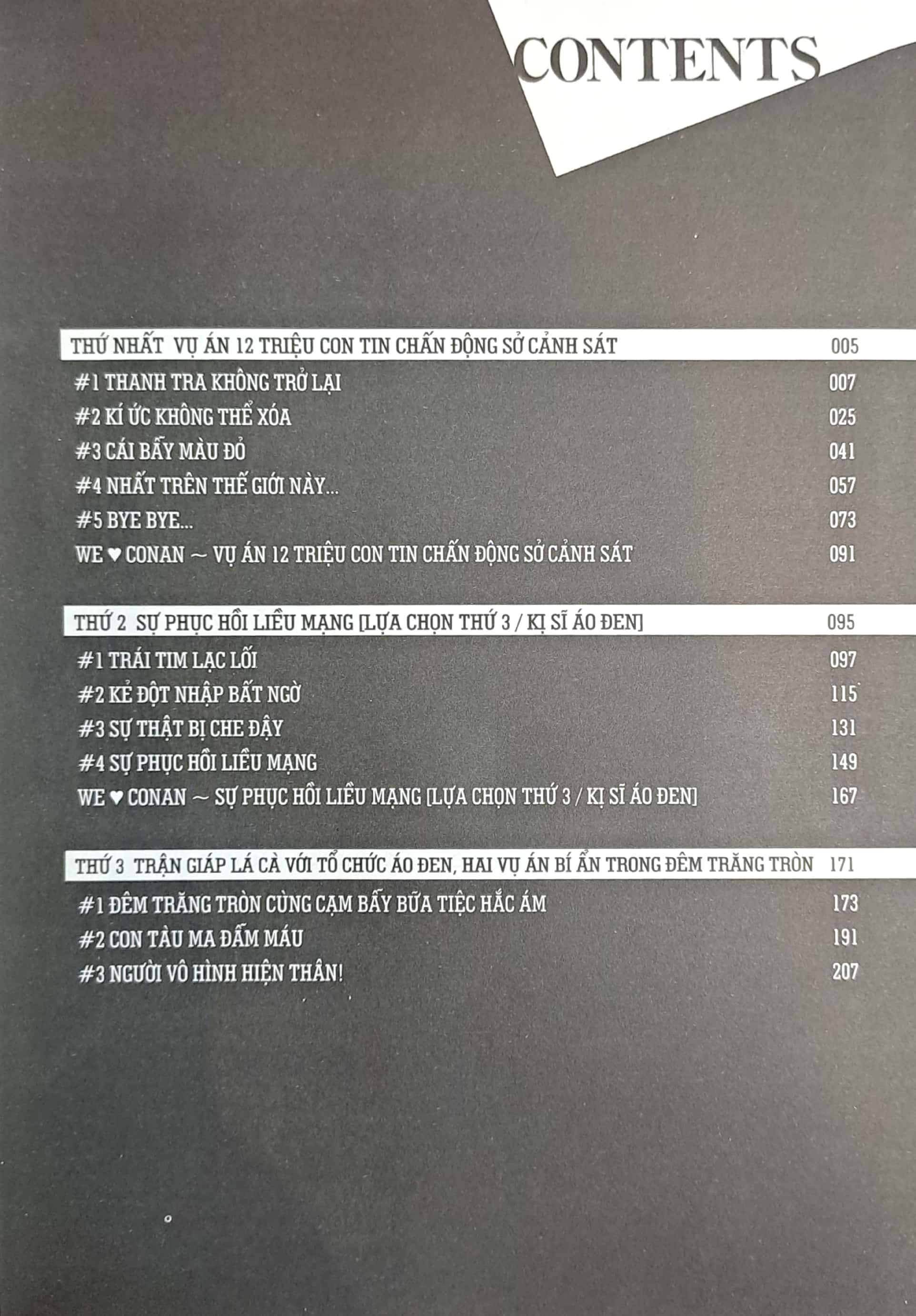 Tuyển tập những vụ án trong "Thám tử lừng danh Conan", được các độc giả bình chọn nhiều nhất như: "Vụ án 12 triệu con tim chấn động Sở cảnh sát", "Sự hồi phục liều mạng" với vở kịch trong Lễ hội Văn hóa - Kị sĩ đeo Mặt nạ, "Trận giáp lá cà với Tổ chức Áo Đen, hai vụ án trong đêm trăng tròn", nhữngbí ẩn về Jodie và Akai xuất hiện trong truyện suốt một thời gian dài đến đây đã được làm sáng tỏ, "Vụ án Kudo Shinichi ở New York" sẽ làm hài lòng những ai yêu mến "Viên đạn bạc" - chàng thám tử Conan/Shinichi!