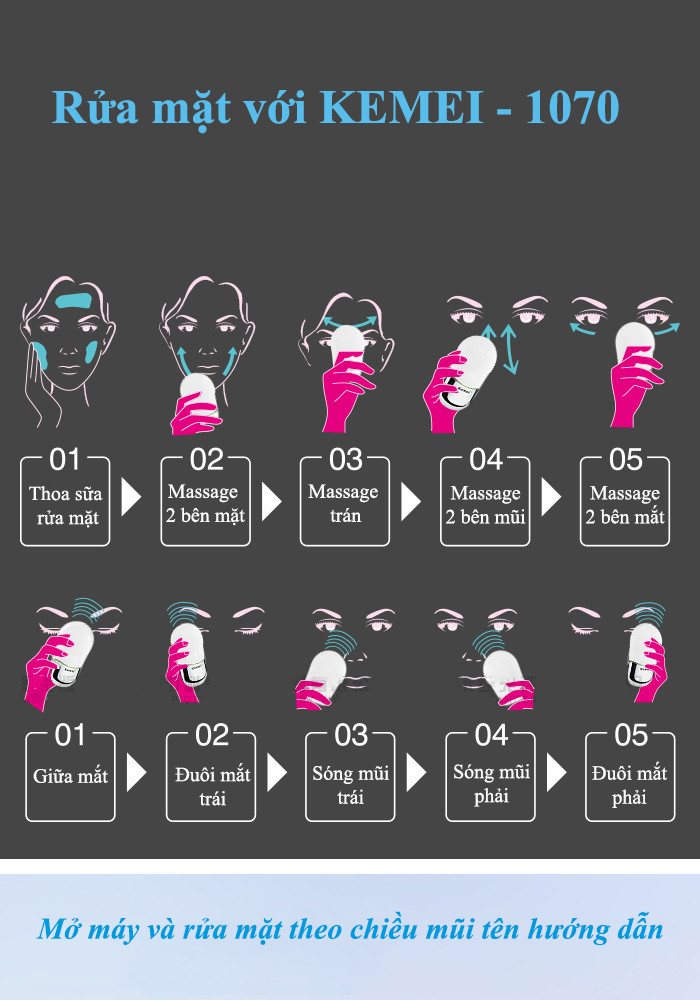 THANH LÝ NEW GIẢM SỐC 50% SỐ LƯỢNG CÓ HẠN Máy rửa mặt Kemei 1070 làm sạch da mặt, thúc đẩy hấp thụ dưỡng chất, tẩy trang hoàn hảo   Ai ai cũng mong muốn