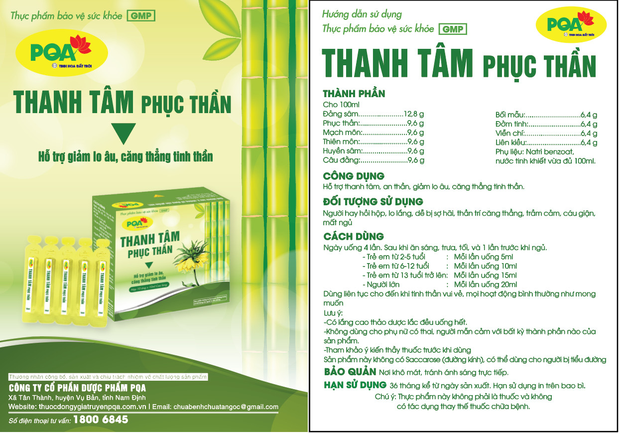 Thanh Tâm Phục Thần PQA Thành Phần Thiên Nhiên Hỗ Trợ An Thần, Giảm Lo Âu, Căng Thẳng Hộp 10 Ống