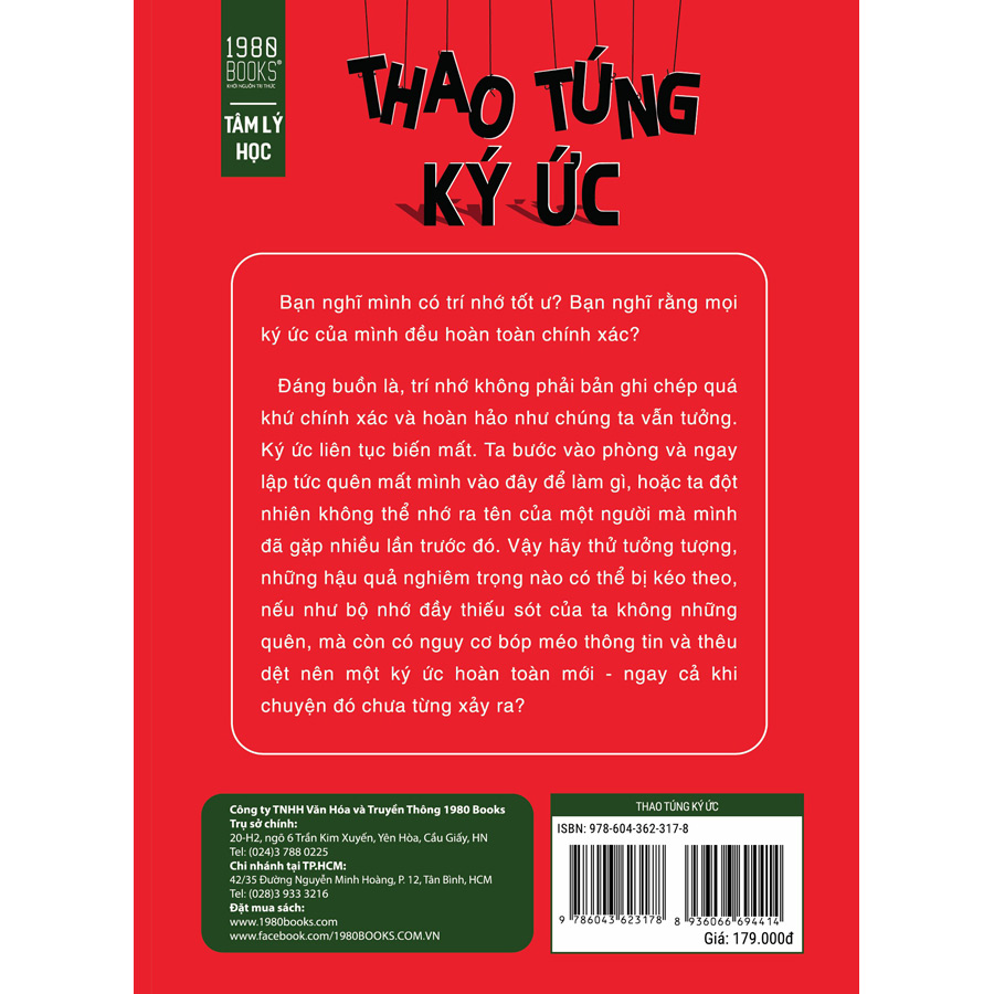 Lôi cuốn và đầy bất ngờ, “Thao túng ký ức” chính là một người Bạn đồng hành trên con đường khám phá bản thân chúng ta dựa trên cơ sở khoa học về trí nhớ. cuốn sách này sẽ giúp chúng ta hiểu hơn về cách ghi nhớ của não bộ, về tính đúng đắn của những ký ức mà ta sở hữu, khiến Bạn phải đặt câu hỏi rằng Bạn thực sự hiểu bản thân mình đến mức nào.