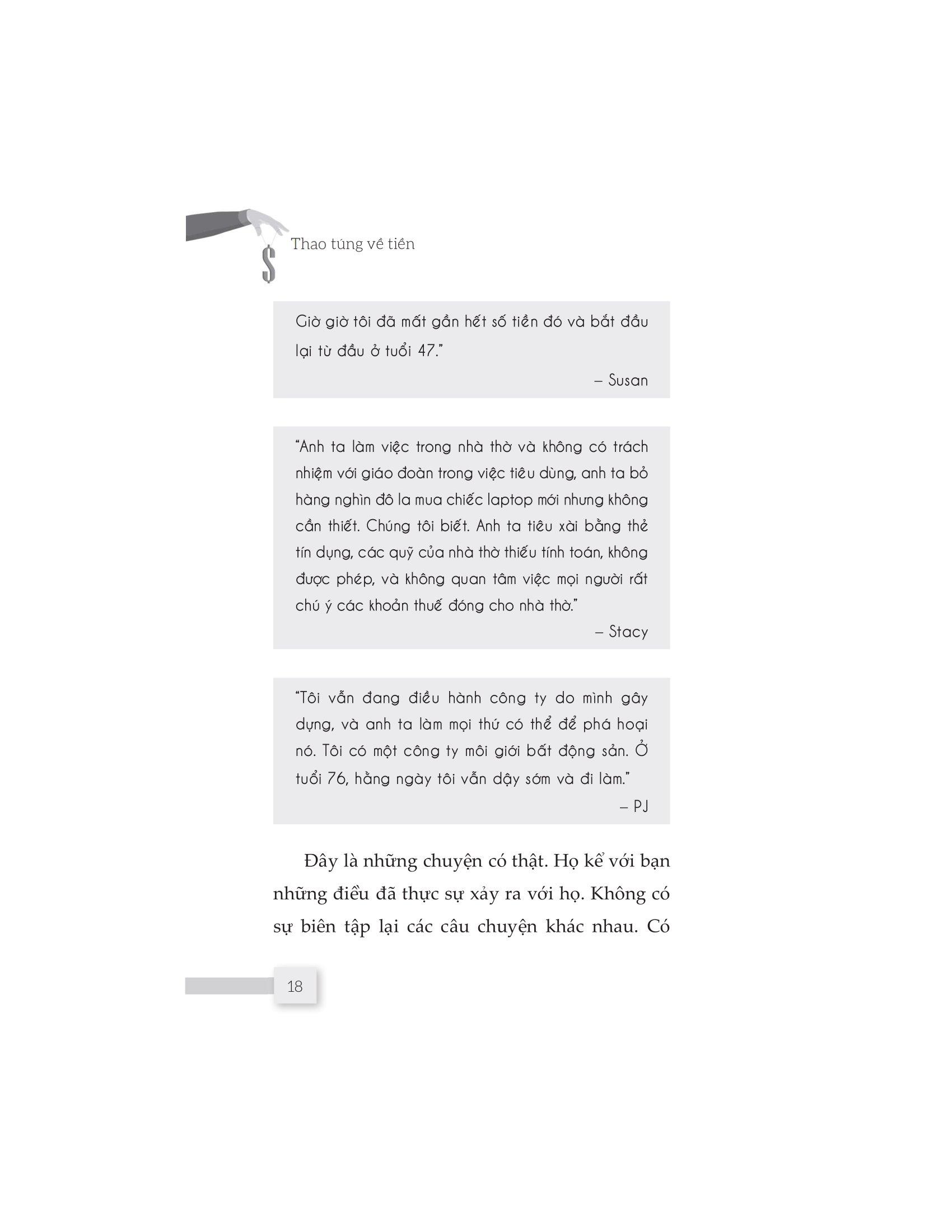 Cuốn sách “Thao túng về tiền” sẽ cho bạn cơ hội vén tấm màn che đậy và thấy được cuộc sống của những người bị tổn hại tài chính do những người thân thiết với họ gây ra. Nó cũng giúp bạn có được cái nhìn cụ thể và sâu sắc hơn về lạm dụng tài chính để nhận biết sớm, có hành động dứt khoát giúp bạn thoát khỏi hố sâu tâm lý và chữa lành những tổn thương tiềm ẩn.