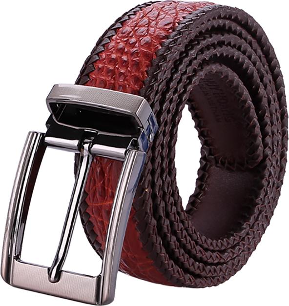 ✨Thắt Lưng Nam Da Cá Sấu Đan Viền Đầu Kim Huy Hoàng HT4278 - Nâu Đỏ