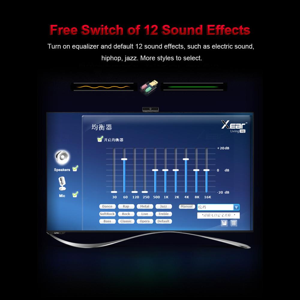 Hi-Fi sound effect.Built-in CM108B noise reduction chip presents high quality sound.