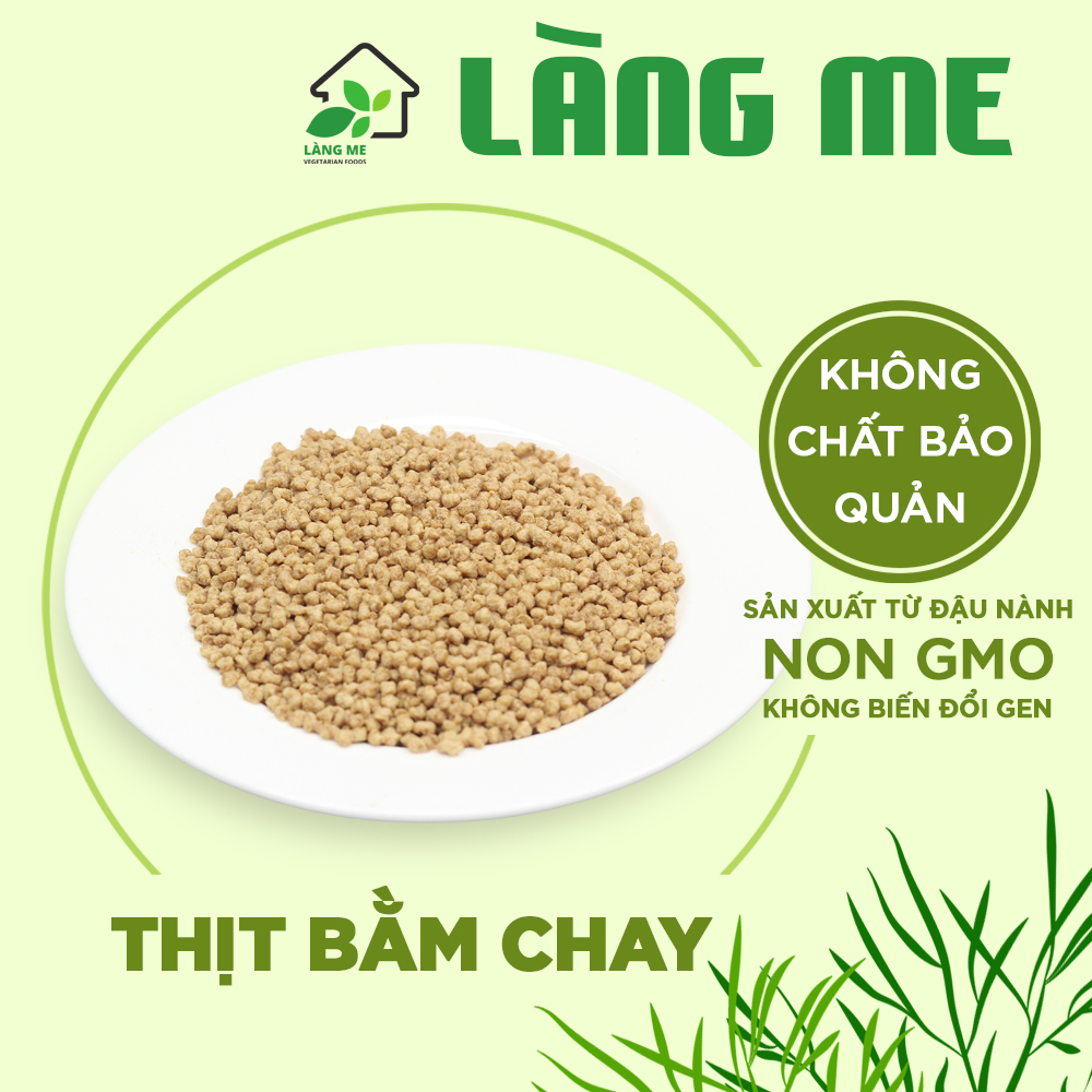 - Thực phẩm chay Làng Me làm từ 100% đậu nành, nước, lúa mì, tinh bột bắp,