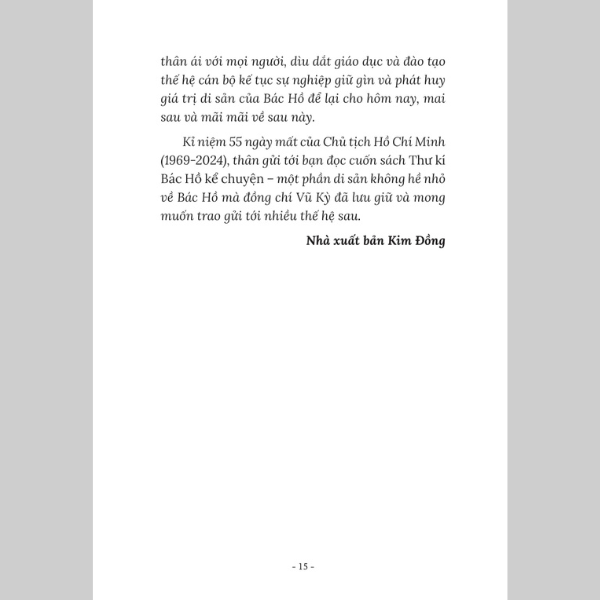 Kỉ niệm 55 ngày mất của Chủ tịch Hồ Chí Minh (1969-2024), thân gửi tới bạn đọc cuốn sách Thư kí Bác Hồ kể chuyện – một phần di sản không hề nhỏ về Bác Hồ mà đồng chí Vũ Kỳ đã lưu giữ và mong muốn trao gửi tới nhiều thế hệ sau.