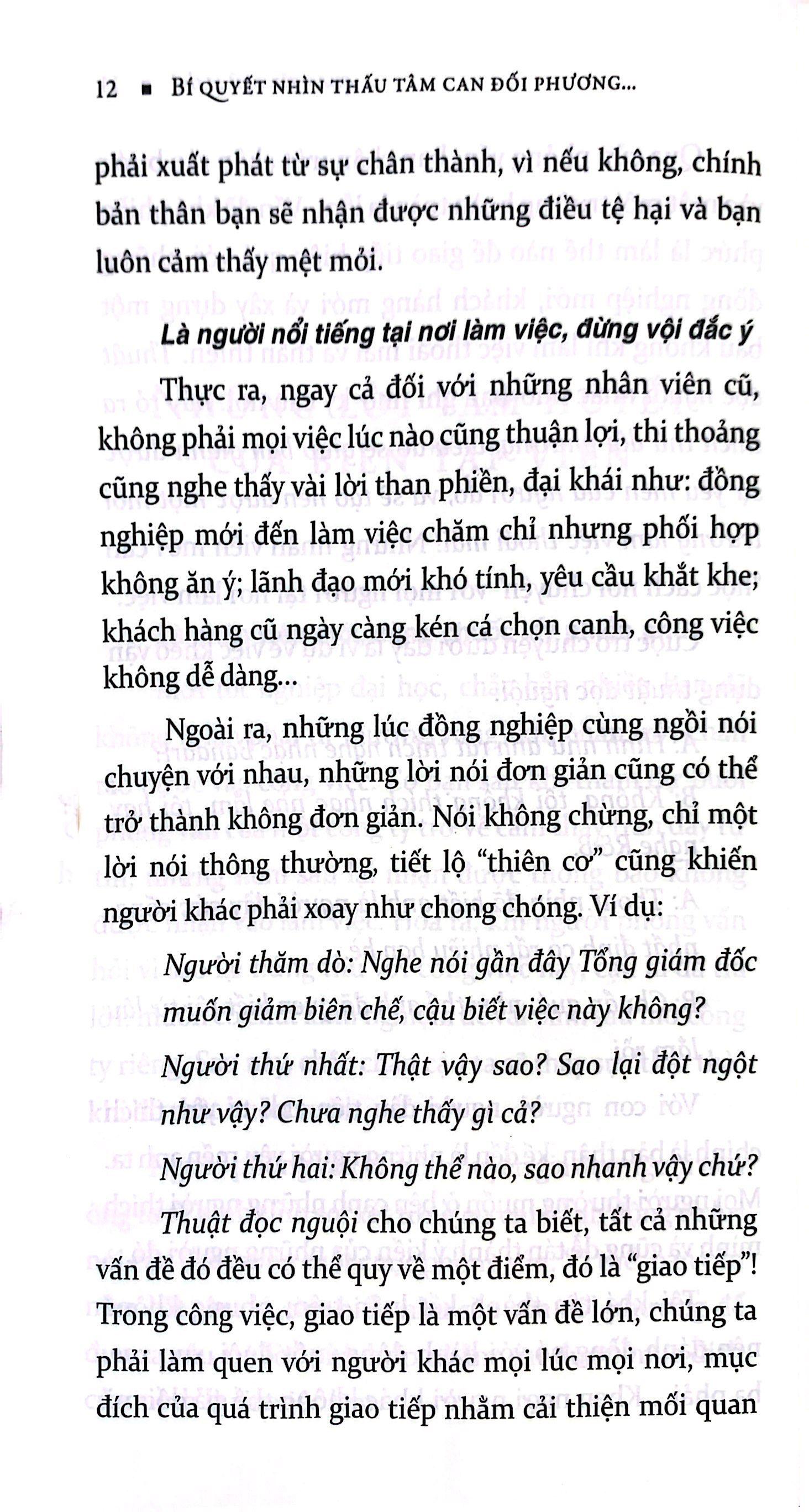 Trong cuộc sống hằng ngày, việc xử lý các vấn đề như: quan hệ với khách hàng, ứng xử với sếp và nhân viên, làm thế nào để xây dựng mối quan hệ thân thiết với người khác giới, làm thế nào để phát triển nhiều hơn nữa các mối quan hệ xã hội… khiến chúng ta đau đầu. Mục đích duy nhất của cuốn sách này là giúp bạn giải quyết những vấn đề kể trên: hướng dẫn bạn cách chung sống hòa thuận với mọi người trong công việc, đời sống. Qua việc đọc cuốn sách này, bạn sẽ dễ dàng nắm vững và vận dụng kỹ năng giao tiếp xã hội, giúp bạn phát huy sức hấp dẫn, được chào đón mọi lúc mọi nơi, dễ dàng chiếm được cảm tình và niềm tin của mọi người.