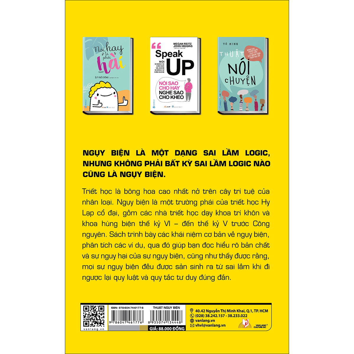 Ngụy biện là một dạng sai lầm logic, nhưng không phải bất kỳ sai lầm logic nào cũng là ngụy biện. Triết học là bông hoa cao nhất nở trên cây trí tuệ của nhân loại. Ngụy biện là một trường phái của triết học Hy Lạp cổ đại, gồm các nhà triết học dạy khoa trí khôn và khoa hùng biện thế kỷ VI – đến thế kỷ V trước Công nguyên. Sách trình bày các khái niệm cơ bản về ngụy biện, phân tích các ví dụ, qua đó giúp bạn đọc hiểu rõ bản chất và sự nguy hại của sự ngụy biện, cũng như thấy được rằng, mọi sự ngụy biện đều được sản sinh ra từ sai lầm khi đi ngược lại quy luật và quy tắc tư duy đúng đắn.