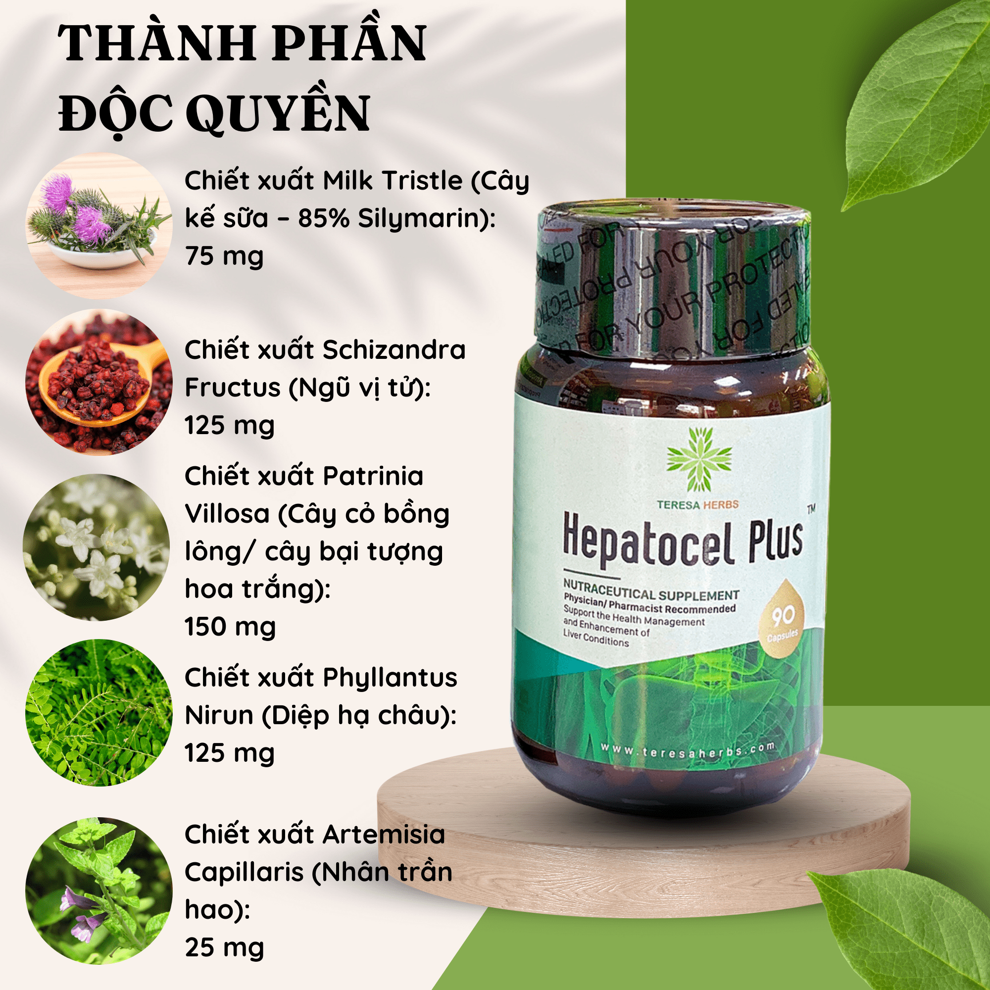 Sản phẩm được Biomed Balance sản xuất độc quyền cho Teresa Gift Shop – dựa trên sự cải tiến công thức sản phẩm Hepatocel Plus của Biomed Pharmaca – một sản phẩm được các ph.òng m.ạch b.ác sĩ tại Hoa Kỳ tin dùng hơn 15 năm nay để hỗ trợ bệ.nh viêm gan B, C và các vấn đề khác về gan.