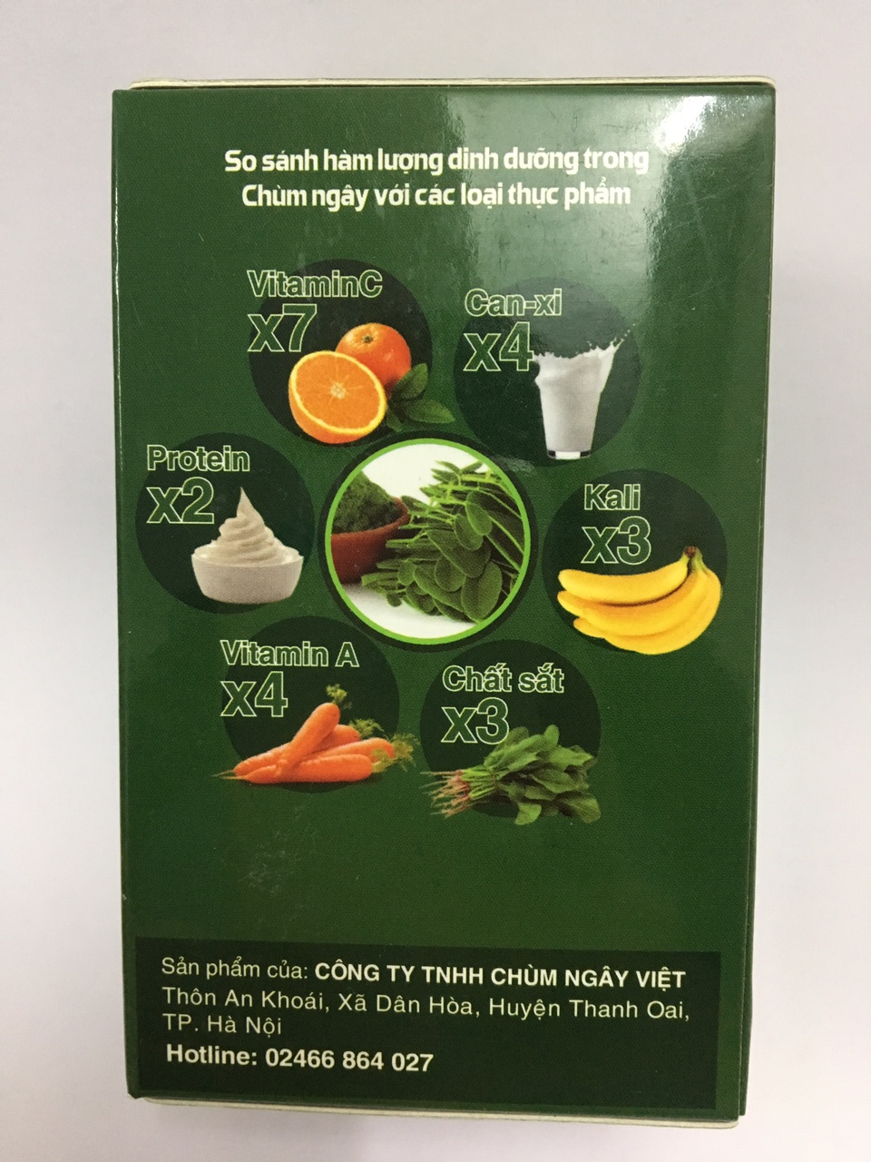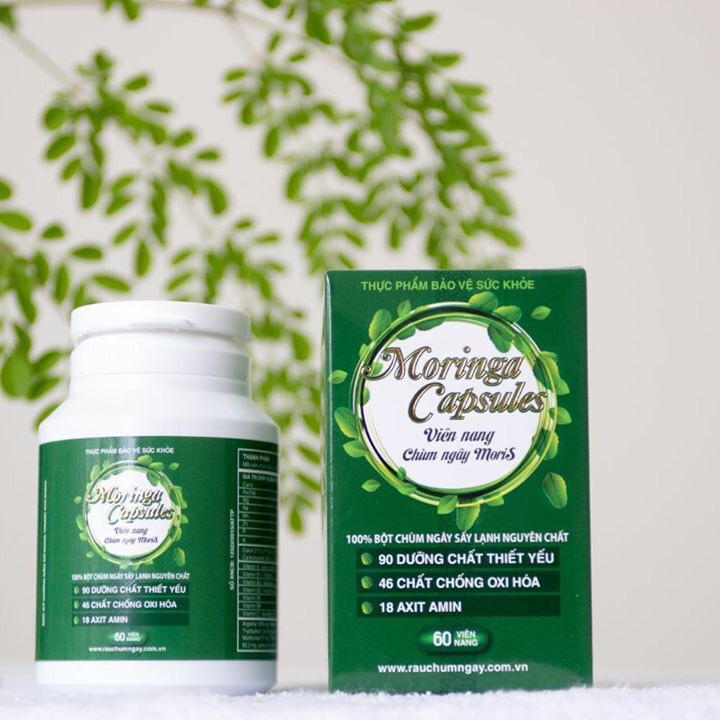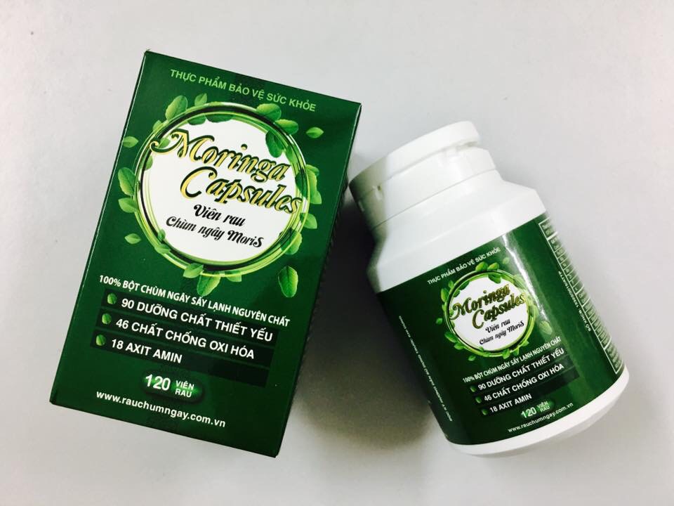 Quy cách đóng gói: Lọ 120 viên, mỗi viên chứa 500mg bột chùm ngây sấy lạnh nguyên chất.
