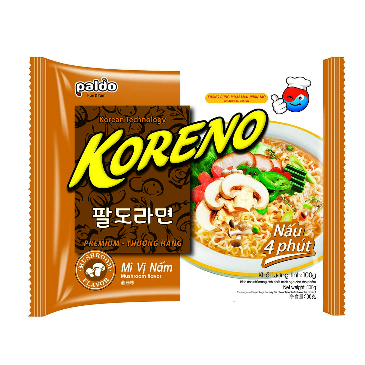 Mì Koreno vị Nấm là dòng sản phảm thế mạnh của Paldo. Sự tinh tế trong từng gói mì được cải tiến với công nghệ Hàn Quốc, đem đến độ dai giòn bóng bẩy, hòa