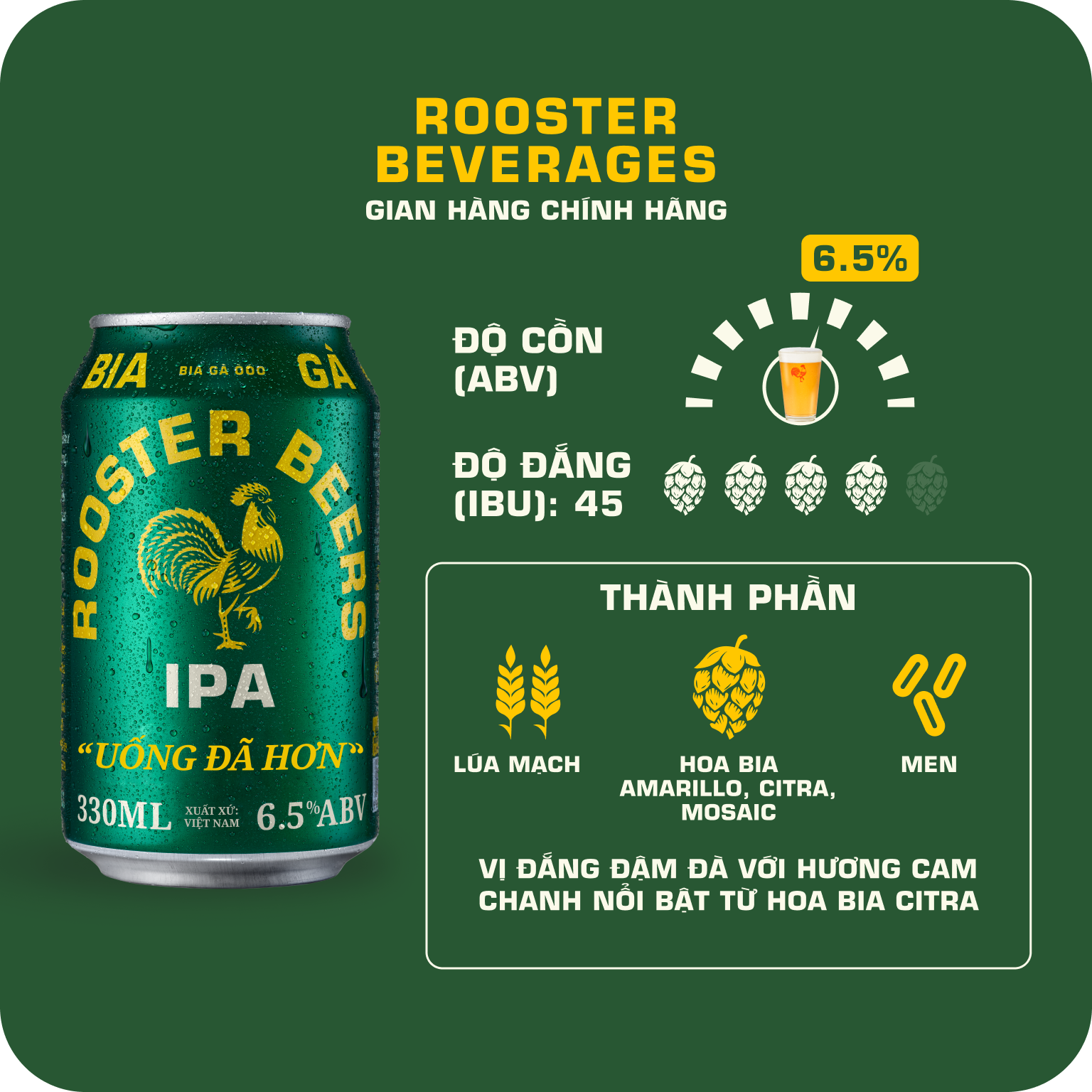 Rooster Beers Double IPA - Vị Khó Quên Rooster Beers là một trong những thương hiệu bia tươi thủ công đầu tiên tại Việt Nam, với mong muốn đưa hương vị truyền thông và tươi