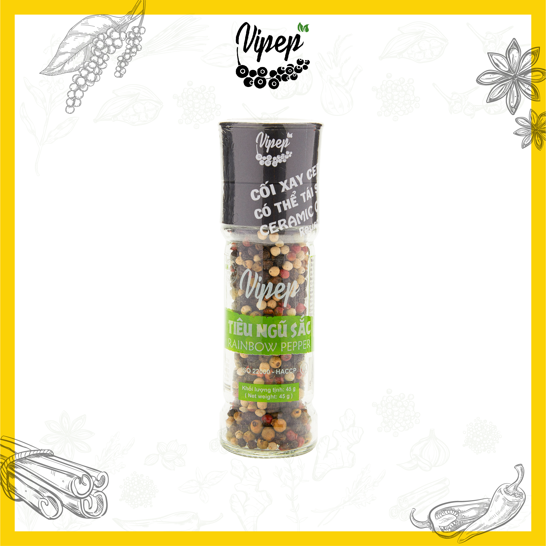 ✨Tiêu Ngũ Sắc Hạt Tự Nhiên Cối Xay Vipep Hũ Thủy Tinh 45g