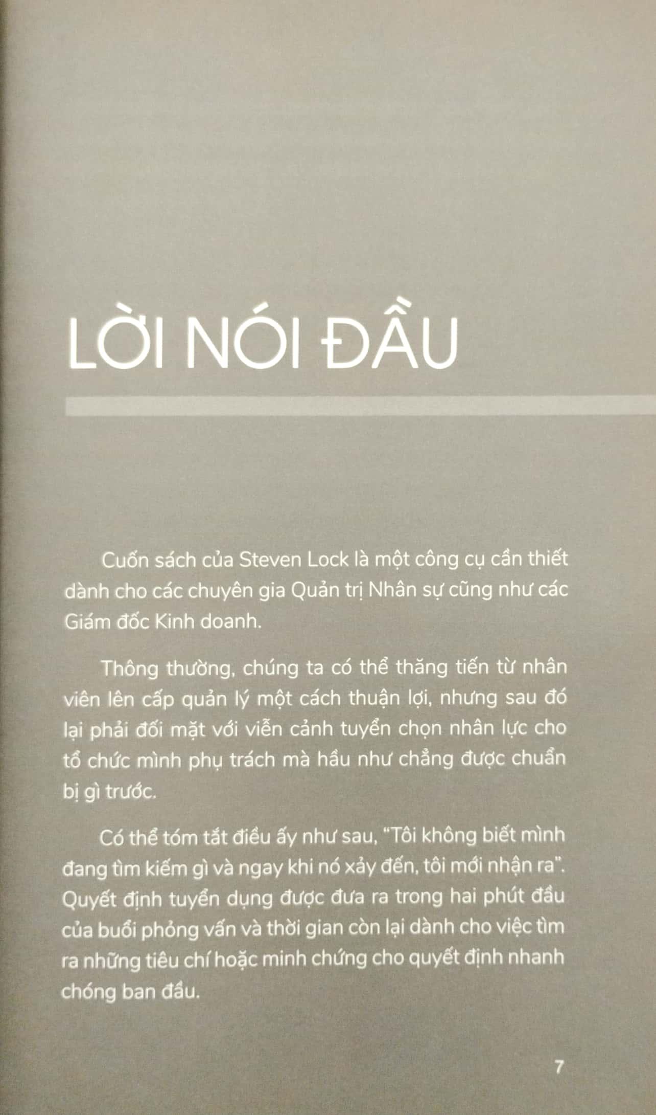 Chúng ta có thể thăng tiến từ nhân viên lên cấp quản lý một cách thuận lợi, nhưng sau đó lại phải đối mặt với viễn cảnh tuyển chọn nhân lực cho tổ chức mình phụ trách mà hầu như chẳng được chuẩn bị gì trước. Việc tuyển dụng sai có thể gây thiệt hại rất lớn về thời gian, năng suất và chi phí cơ hội cho công ty và cả chính bản thân ta.