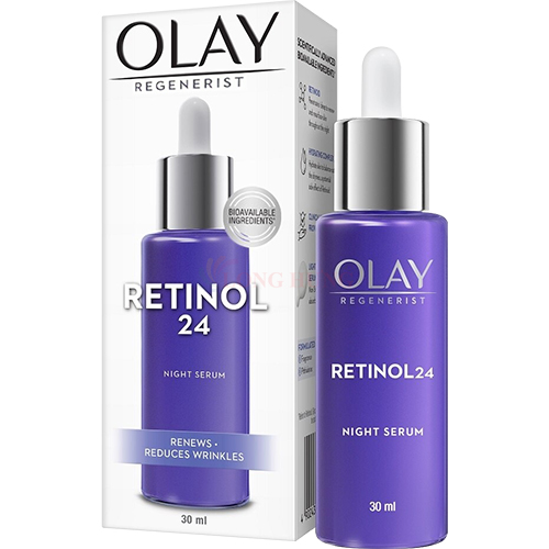 Tinh Chất Olay Regenerist Retinol 24 Night Serum Fragrance-Free là sản phẩm serum hạn chế lão hóa thuộc dòng sản phẩm Regenerist Retinol 24 mới từ thương hiệu Olay của Mỹ, với công thức chứa phức hợp Niacinamide và Retinol mang lại những cải thiện rõ rệt các vấn đề về da như nếp nhăn, độ mịn, độ sáng, làm săn chắc da, mờ đốm nâu và thu nhỏ lỗ chân lông