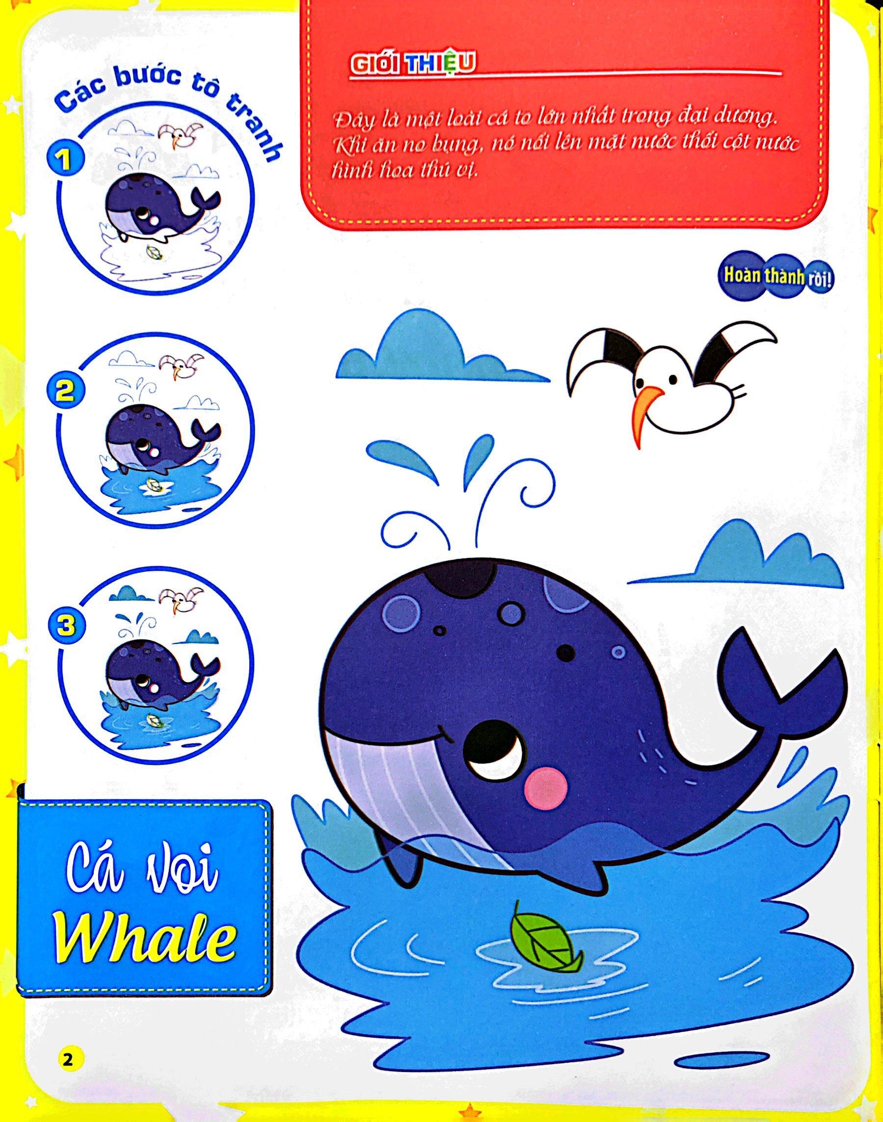 Sách tô màu, nhưng vẫn có vài dòng giới thiệu về sự vật, để bé có thể học đánh vần và hiểu kiến thức cơ bản của sự vật. Sự vật cũng được thể hiện bằng cả tên tiếng Việt và tiếng Anh giúp bé có thêm được vốn từ song ngữ phong phú về sự vật.