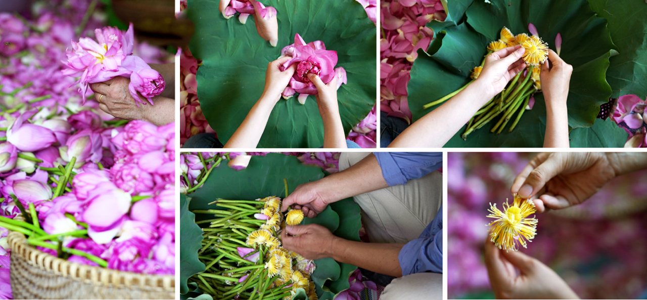 - Trà ướp Sen Tây Hồ là sự kết hợp hoàn hảo “hương thơm cốm đặc trưng” sâu ngọt của trà đinh Tiến Quan Thái Nguyên và hương thơm thảo ngọt, dịu dàng của hoa sen Tây Hồ.
