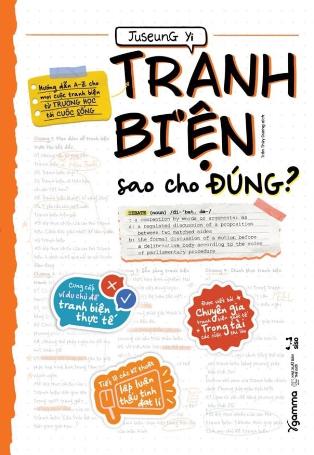 Tranh Biện Sao Cho Đúng? Tranh biện sao cho đúng? là cuốn sách không chỉ đơn thuần đưa ra những kĩ năng để giành chiến thắng trên đấu trường tranh biện, nó còn nêu bật được ý nghĩa đích thực của tranh biện và giới thiệu một cách dễ hiểu về các phương pháp tranh biện để ai cũng có thể áp dụng vào học tập và công việc. Đối với nhiều người, tranh biện có lẽ là một thuật ngữ không mấy quen thuộc. Một số người có thể thấy nó đáng sợ, số khác lại thấy nó phi thực tế hoặc phiền toái. Nhưng trên thực tế, tranh biện hay tranh luận xảy ra trong mọi tình huống ở nhà, ở trường, ở nơi làm việc hay giữa bạn bè, và có thể nói kĩ năng tranh biện giờ đây quan trọng không kém gì kĩ năng đọc hay viết. Tranh biện là một kĩ năng sống thiết yếu. Nó mang lại cho chúng ta nhiều lợi ích, không chỉ bồi dưỡng năng lực học tập, mà còn tác động tích cực tới nhiều mặt khác trong cuộc sống như: khả năng giải quyết vấn đề, quá trình ra quyết định, bảo vệ quyền lợi cá nhân. Thông qua cuốn sách Tranh biện sao cho đúng?, người học có thể nâng cao năng lực tư duy phản biện, phân tích những khái niệm phức tạp, lập luận thấu tình đạt lí và thuyết phục người khác. Sách được chia thành 5 chương, mỗi chương xử lí những nội dung cần thiết theo từng giai đoạn. Chương 1 giải thích khái niệm tranh biện và lí do tại sao tranh biện lại cần thiết trong cuộc sống. Chương 2 trình bày các phương pháp nâng cao khả năng truyền đạt và kĩ năng thuyết trình trước khi chính thức bước vào tranh biện. Chương 3 tập trung vào các kĩ năng cơ bản trong tranh biện và các kĩ thuật có liên quan. Chương 4 đề cập đến quá trình chuẩn bị cho tranh biện và phương pháp phân tích kiến nghị. Chương 5 tổng kết những điểm cần lưu ý khi hoàn tất công tác chuẩn bị cho tranh biện và bước vào tranh biện thực tế. Đối tượng: Những người thường bị rối lời đuối lí khi tranh luận. Nhân viên văn phòng phải hệ thống nội dung trao đổi và truyền đạt ý kiến một cách logic trong các cuộc họp. Ứng viên chuẩn bị cho vòng phỏng vấn tranh luận. Học sinh trung học, sinh viên chuẩn bị tham gia các cuộc thi tranh biện. Người muốn rèn khả năng trình bày thuyết phục và logic về bất cứ chủ đề nào. Đôi nét về tác giả: Juseung Yi là người sáng lập và giám đốc điều hành của Debate For All, một doanh nghiệp xã hội trong lĩnh vực giáo dục tại Hàn Quốc. Anh từng giữ vai trò giám khảo chính của nhiều giải đấu tranh biện khác nhau trên khắp châu Á và là huấn luyện viên của đội tranh biện quốc gia Hàn Quốc. Juseung Yi được biết đến như một người tiên phong trong lĩnh vực giáo dục tranh biện ở Hàn Quốc. Anh đã tư vấn cho các tập đoàn, cơ quan truyền thông, sở giáo dục các tỉnh thành, trường đại học và các tổ chức để kết hợp các phương pháp tranh biện và tổ chức các sự kiện tranh biện và thuyết trình. Cuốn sách Tranh biện sao cho đúng? của Juseung Yi luôn đứng đầu danh sách sách bán chạy nhất của thể loại sách về tranh biện/đàm phán tại Hàn Quốc.