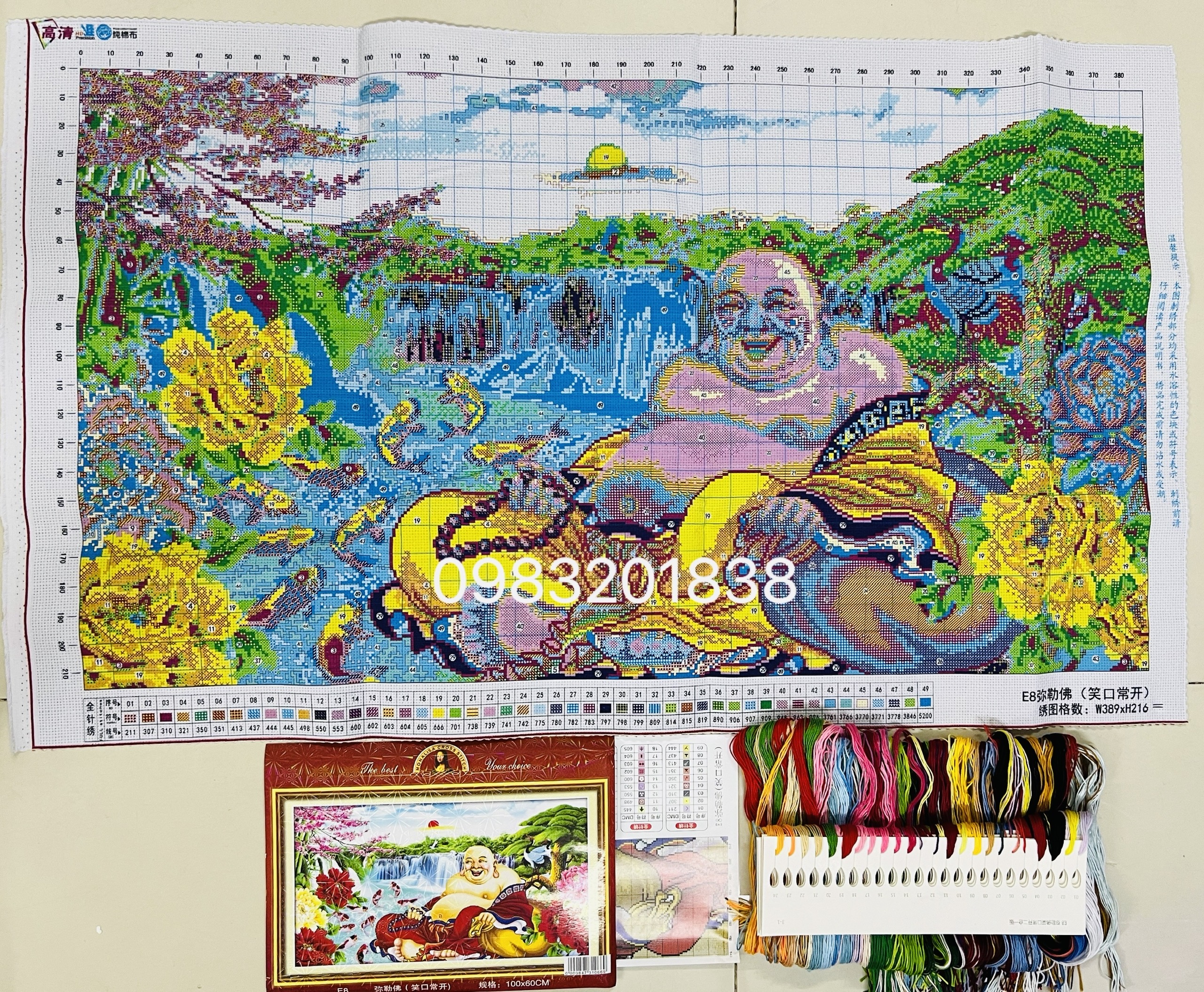 ✨Tranh thêu chữ thập Phật di lặc E8, kích thước 100 x 60 cm