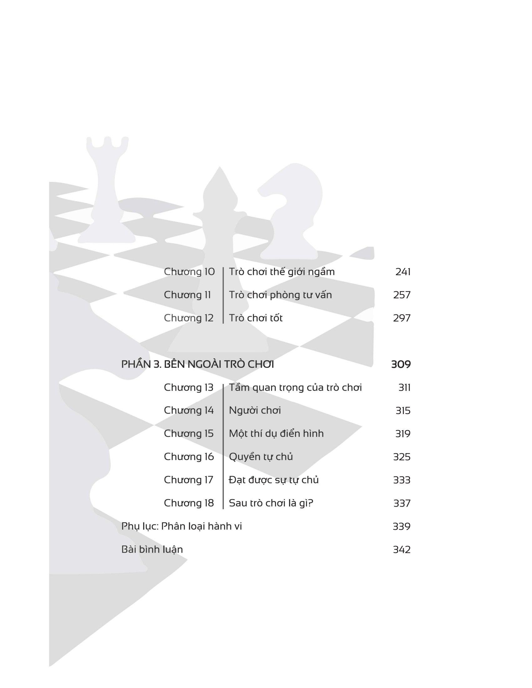 Chúng ta tham gia trò chơi mọi nơi, mọi lúc trong cuộc sống hàng ngày – trò chơi tình dục với bạn tình, trò chơi hôn nhân với bạn đời, trò chơi quyền lực với sếp và trò chơi cạnh tranh với bạn bè.