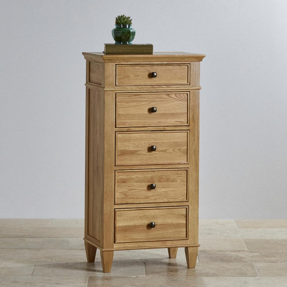 Tủ 5 ngăn kéo cao Juno Sofa gỗ sồi nằm trong Bộ sưu tập gỗ sồi Juno Sofa của Juno Sofa với phong cách cổ điển mang lại phong gian ấm áp, phù hợp với hầu hết với nội thất các gia đình Việt, đặc biệt là các căn hộ chung cư hay nhà phố mang phong cách tân cổ điển. Tủ hoàn hảo cho việc lưu trữ từ quần áo cho tới các vật dụng khác với 5 ngăn kéo rộng rãi giúp bạn có thể sắp xếp đồ một cách gọn gàng