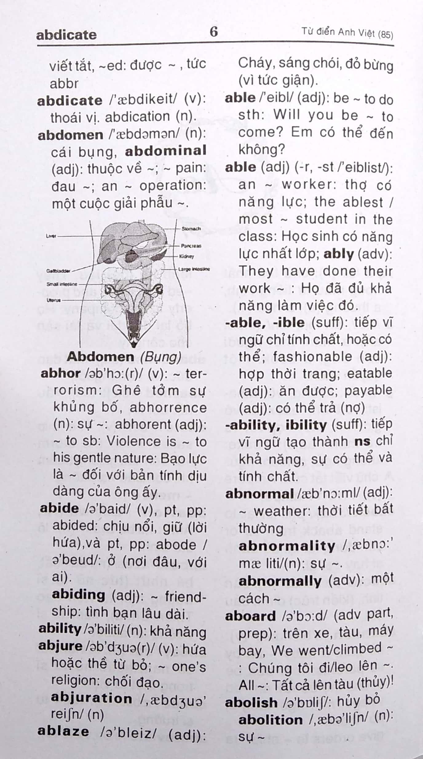 Từ Điển Anh - Việt (225.000 Mục từ và định nghĩa) cung cấp danh sách các từ (được sắp xếp theo thứ tự ABC), giải thích rõ ràng cụ thể các vấn đề có liên