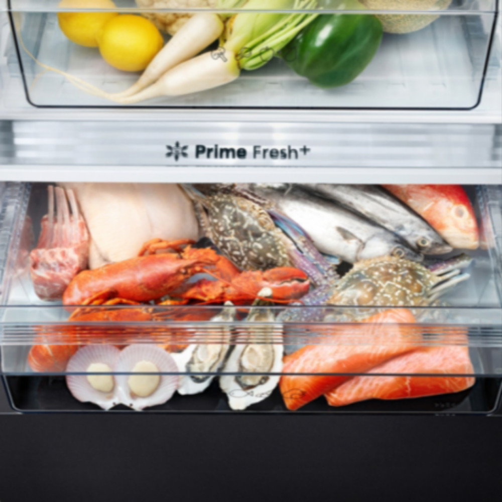 - Bảo quản thực phẩm không cần rã đông với ngăn cấp đông mềm Prime Fresh+ Tủ Lạnh 2 Cánh Panasonic 377 lít NR-BX421GPKV được trang bị ngăn đông mềm thế hệ mới Prime Fresh+ với mức nhiệt độ ở -3 độ C, chỉ làm đông nhẹ trên bề mặt thực phẩm. Nhờ đó thực phẩm giữ được các chất dinh dưỡng, độ thơm ngon, tiết kiệm thời gian để rã đông trước khi chế biến, rất tiện lợi với những người bận rộn. Ngoài ra, với ngăn Prime Fresh+ bạn có thể bảo quản thịt cá tươi ngon như mới lên đến 7 ngày.