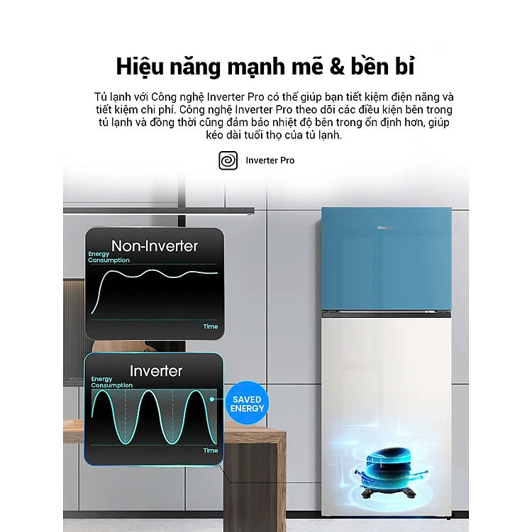 - Tiết Kiệm Năng Lượng 4 Sao và Thân Thiện Với Môi Trường: được trang bị công nghệ Inverter Pro tiên tiến của Hisense, động cơ sẽ tự động điều chỉnh tốc độ tùy theo nhu cầu để đạt hiệu suất tiết kiệm điện năng tốt hơn, đồng thời giảm hao mòn để kéo dài tuổi thọ. Bên cạnh đó, không chỉ giúp bạn tiết kiệm chi phí mà còn thân thiện với môi trường.