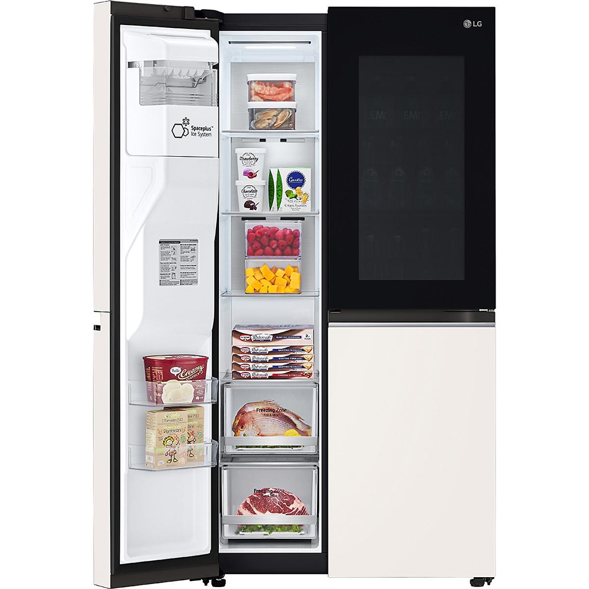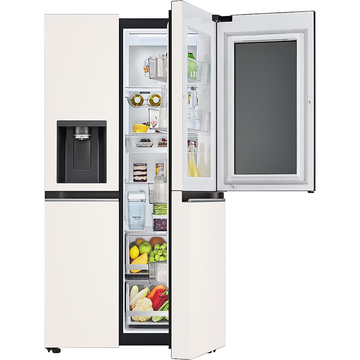 - ĐƯỢC KHUI THÙNG KIỂM TRA sản phẩm trước khi thanh toán/ký nhận Đặc điểm sản phẩm Model: GR-X257BG Màu sắc: Be Nhà sản xuất: LG Xuất xứ: Trung Quốc Năm ra mắt : 2023 Kiểu tủ lạnh: Side by side Số cửa tủ: 2 cửa Dung tích tủ lạnh: 674 L Dung tích sử dụng: 635 L Dung tích ngăn đá: 219 L Dung tích ngăn lạnh: 416 L Đóng tuyết: Không Chất liệu khay: Kính cường lực Công nghệ làm lạnh: LINEARCooling, DoorCooling+ Công nghệ bảo quản thực phẩm: FRESHBalancer Kháng khuẩn / Khử mùi: Hygiene Fresh+ Chất liệu bên ngoài: PCM Màu Be Công nghệ Inverter: Có Inverter Làm đá tự động: Máy làm đá tự động (Spaceplus), làm đá viên, đá nghiền Lấy nước bên ngoài: Có Điện năng tiêu thụ: 688 kWh/năm (2 sao) Kết nối Wifi: Wifi ThinQ Tiện ích khác: Chuẩn đoán thông minh (Smart Diagnosis); Đông nhanh (Express Freeze); Hộp tiện ích (Utility Box), giá đựng rượu, hộp đựng rau; Khóa trẻ em (Child lock); Cảnh báo cửa (Door alarm) Khối lượng sản phẩm (kg): 131 kg Kích thước sản phẩm: 913x735x1790 mm Ngăn đá