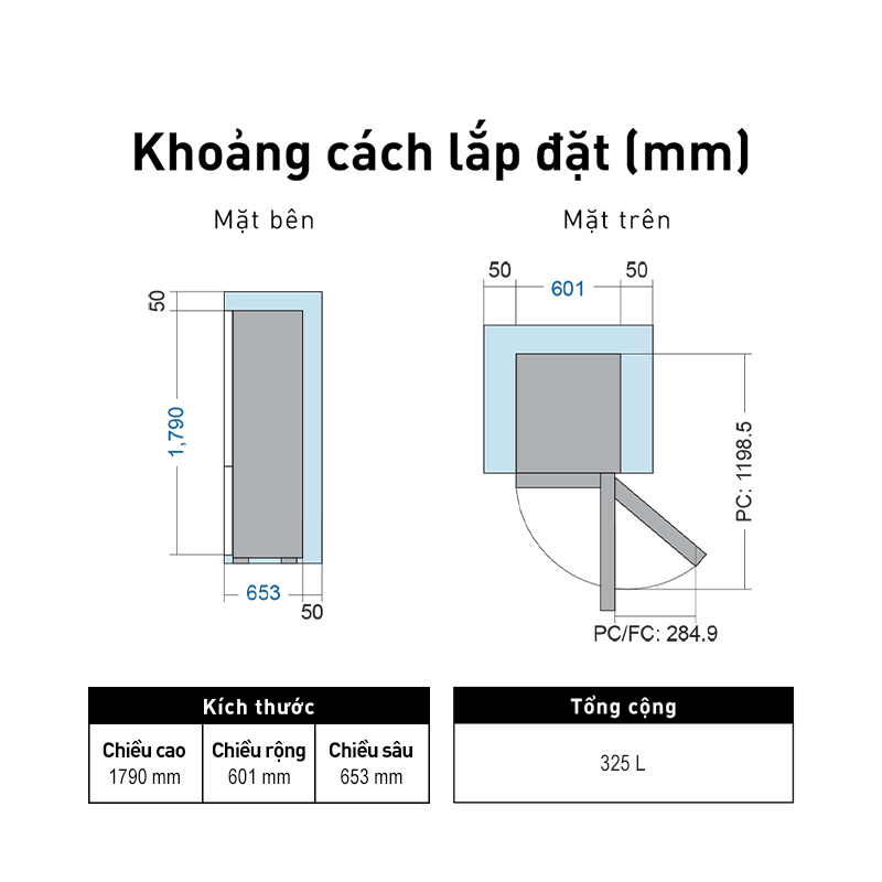 - Ngăn đông: 97 L Kích thước sản phẩm (RxSxC): 601 x 653 x 1,790 mm Điện áp: 220V Héc: 50 Hz Mức tiêu thụ năng lượng: 366 kWh/năm Mức năng lượng: 5 Sao Trọng lượng tịnh: 63 kg Tổng trọng lượng: 69 kg Số cửa: 2 Màu cửa: Đen Vật liệu cửa: Gương kính Bảng điều khiển: Bên trong Thông tin bảo hành Trung tâm Dịch vụ bảo hành Panasonic Giờ làm việc: