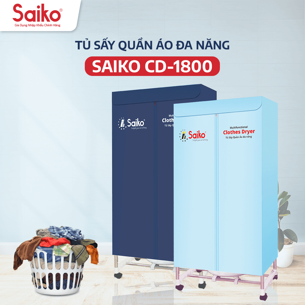 Sấy Khô Nhanh Chóng, Đảm Bảo Quần Áo Luôn Thơm Mát và Khô Rộng Cả Mùa Mưa - Tủ Sấy Quần Áo Đa Năng Saiko CD-1900 Gia đình từ 2-4 người luôn đặt ra câu