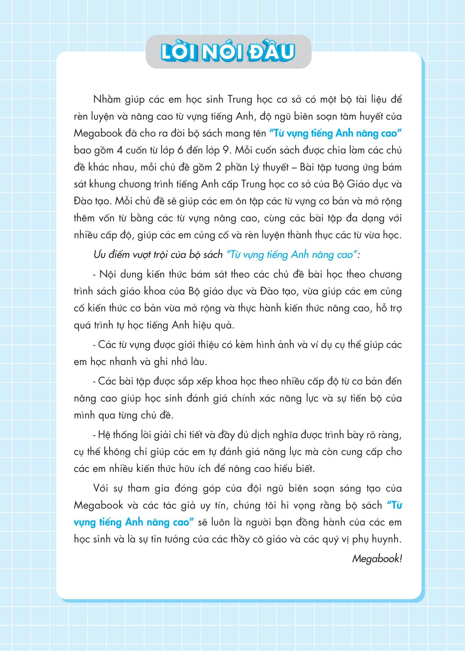Megabook hi vọng rằng bộ sách “Từ vựng tiếng Anh nâng cao” sẽ luôn là người bạn đồng hành của các em học sinh và là sự tin tưởng của các thầy cô giáo và các quý vị phụ huynh.
