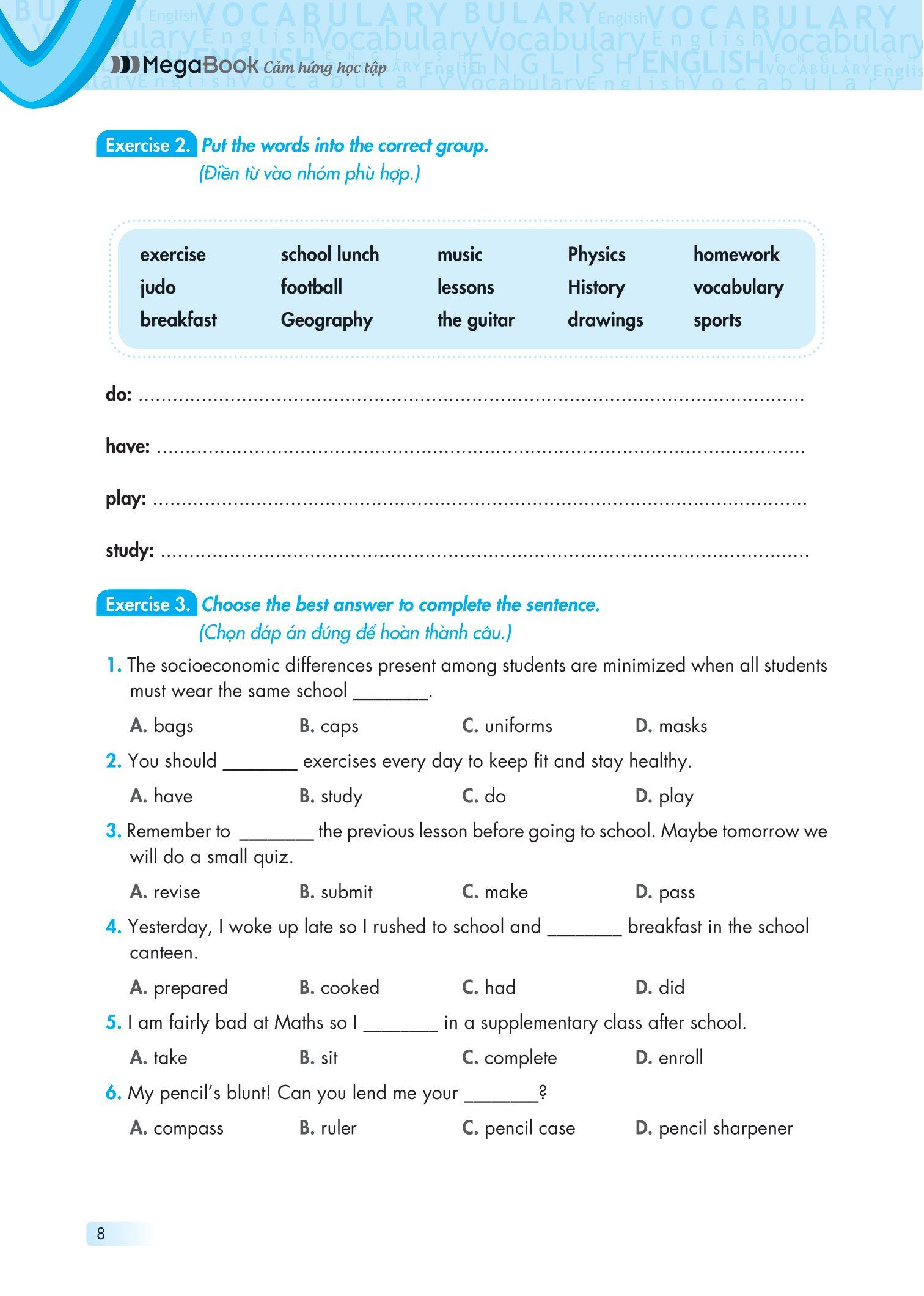 Hệ thống lời giải chi tiết và đầy đủ dịch nghĩa được trình bày rõ ràng, cụ thể không chỉ giúp các em tự đánh giá năng lực mà còn cung cấp cho các em nhiều kiến thức hữu ích để nâng cao hiểu biết.