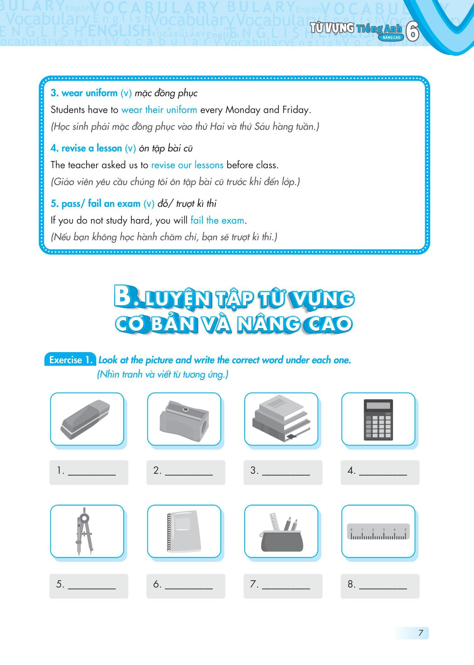 Các từ vựng được giới thiệu có kèm hình ảnh và ví dụ cụ thể giúp các em học nhanh và ghi nhớ lâu.