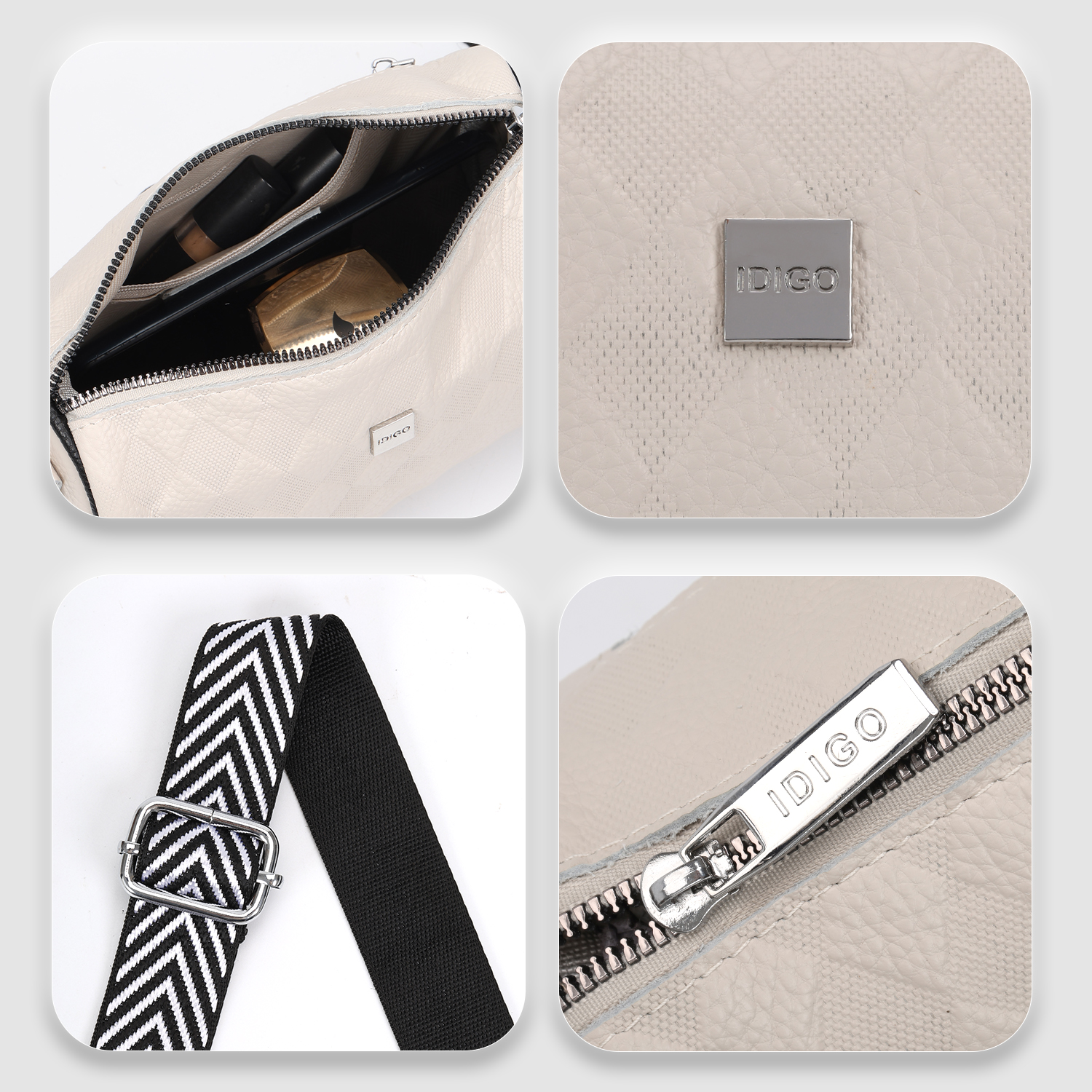 ✨Túi đeo vai đi làm, túi đeo chéo nữ phom mềm, họa tiết nổi da bò thật IDIGO FB1 - 5062