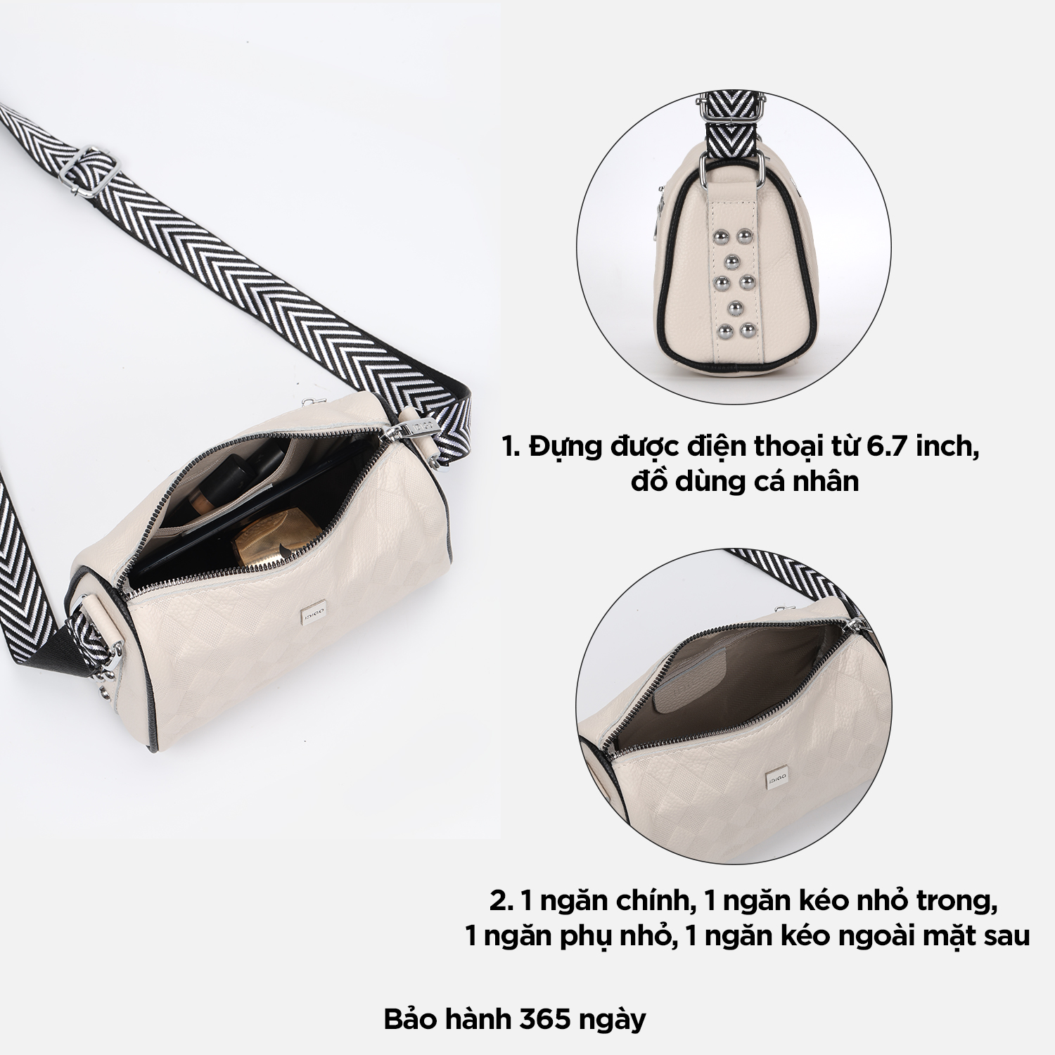 Chiếc Túi xách tay công sở, túi đeo chéo nữ chần trám dạo phố phong cách hàn quốc với thiết kế dáng hình thang cùng chi tiết chần trám lạ mắt tạo nên một phong cách vừa thanh lịch, lại rất hiện đại và tao nhã, ắt hẳn sẽ khiến cho các bạn siêu lòng ngay từ ánh nhìn đầu tiên. Túi xách tay công sở, túi đeo chéo nữ chần trám dạo phố phong cách hàn quốc này thích hợp cho cho các bạn mang đi làm, đi chơi, du lịch hay dạo phố, cà phê cùng bạn bè... - Kích thước: 29 x 7.5 x 27.5 x 40cm (Dài đáy x Rộng x Cao x Dài miệng) - Kích thước chiều cao có thể kéo khoá: 18cm - Màu sắc: Đen, Be, Kem, Nâu đậm - Chất liệu: Da tổng hợp - Trọng lượng: 460 gram - Xuất xứ: Trung Quốc - Số ngăn: 1 chính, 1 phụ nhỏ bên trong, 1 kéo nhỏ bên trong - Chiều cao quai xách tay: 14cm - Chiều dài dây đeo chéo: 110cm (có khoá thâu tăng giảm độ dài) - Cách đeo: (1) đeo chéo (2) đeo vai (3) xách tay Gam màu thanh lịch, bền màu với thời gian, đường may chắc chắn. Chất liệu da tổng hợp có độ mềm vừa đủ tạo nên phom dáng túi, vừa có độ đàn hồi, vừa chống thấm nước nhẹ, bền đẹp và dễ dàng vệ sinh. Phom túi hình thang với chất liệu da có độ mềm vừa phải giúp túi hạn chế bị cong vênh, nhăn gãy khi sử dụng. Bên trong túi có 1 ngăn chính thích hợp đựng máy tính bảng từ 10.5inch trở xuống, điện thoại, ví tiền (Có thể để tài liệu A4 trong trường hợp không kéo khoá)… Ngoài ra bên trong túi còn có 1 ngăn phụ nhỏ đựng các loại giấy tờ tuỳ thân, thẻ xe cùng 1 ngăn kéo nhỏ để được chìa khoá, mỹ phẩm… rất thích hợp sử dụng để đi làm, đi chơi, du lịch hay dạo phố. Túi có khóa kéo cao cấp hoạt động mượt mà và trơn tru, dây kéo bền & chắc chắn. Đặc biệt, luân phiên xách tay với quai xách cố định cao 14cm hoặc đeo chéo/đeo vai với dây da dài 110cm giúp thay đổi phong cách. Sản phẩm túi xách này được IDIGO đặt sản xuất tại nhà máy Trung Quốc và nhập khẩu chính ngạch về Việt Nam, có thông tin sản phẩm nhập khẩu in rõ ràng trên tem nhãn.
