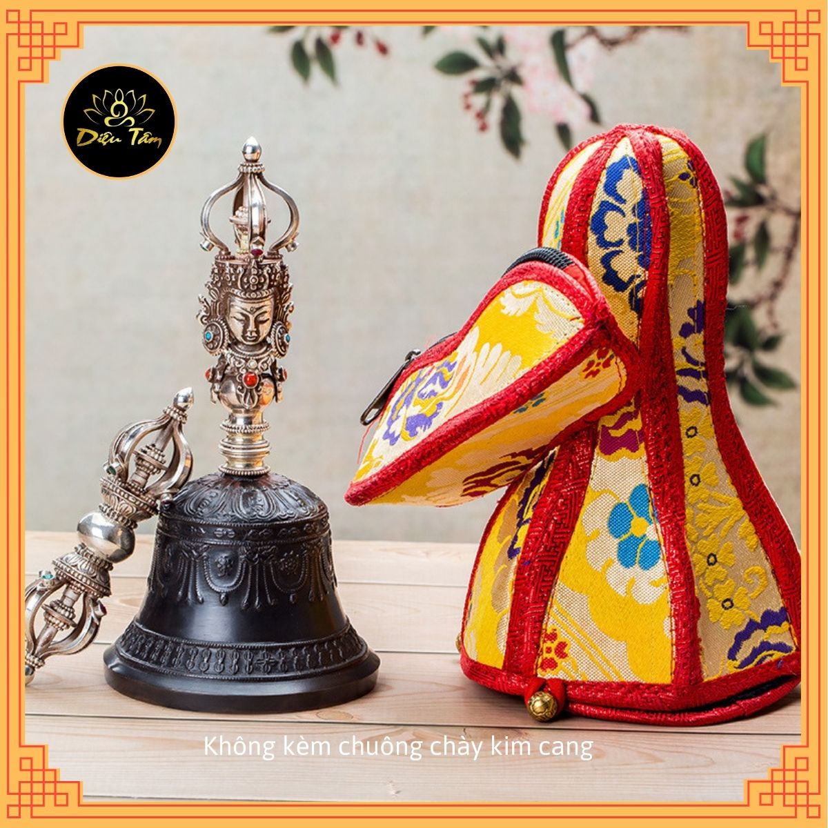 ✨Túi vải gấm hộp đựng chuông chày kim cang Nepal mật tông tây tạng đồ thờ cúng bộ vỏ bao đựng chuông chùy - áo linh chử