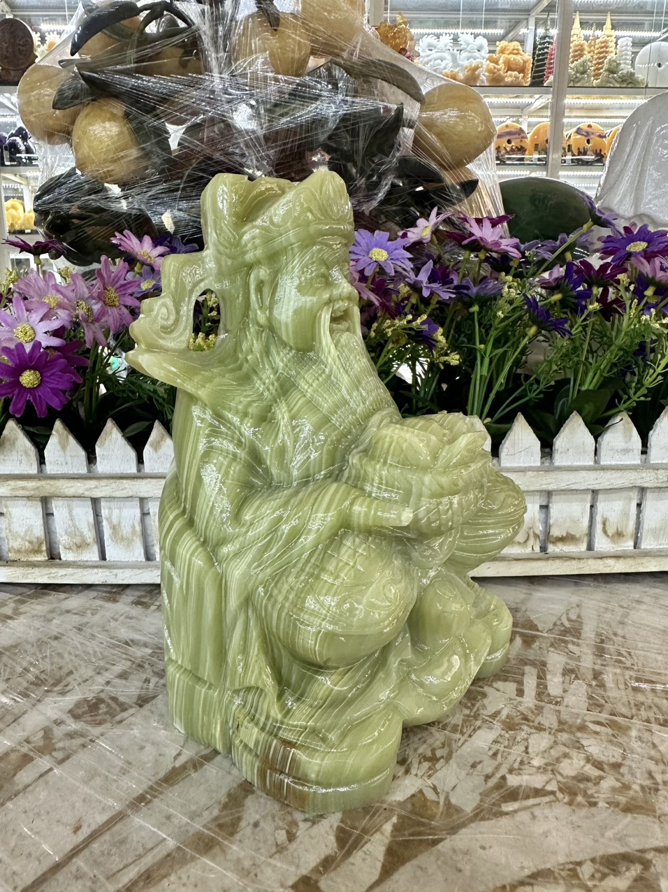 Chất liệu: Đá ngọc Onyx Kích thước: Dài 14 cm x Rộng 11 cm x Cao 20 cm Khối lượng: 4,6 kg - Thần Tài là vị thần trông coi tiền tài, vàng bạc, mang