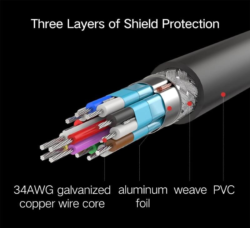 1. 0.5m-2m 30AWG 8K/60Hz OD7.0mm 2. 3m 28AWG 8K/60Hz OD7.3mm 3. 8K@60Hz, 8K@50Hz 4. 4K@120Hz, 4K@100Hz,1080P 5. This 8K HDMI cable support latest HDR (Like Dolby Vision HDR and HDR 10+), Dolby TrueHD Master Audio,